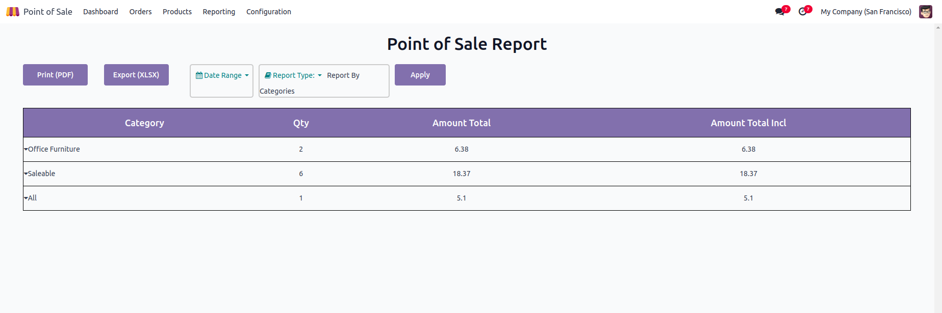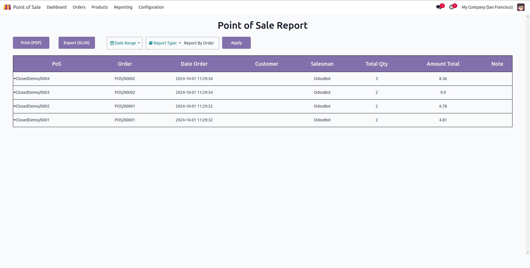 Go to Point of Sale --> Reporting --> PoS Report
