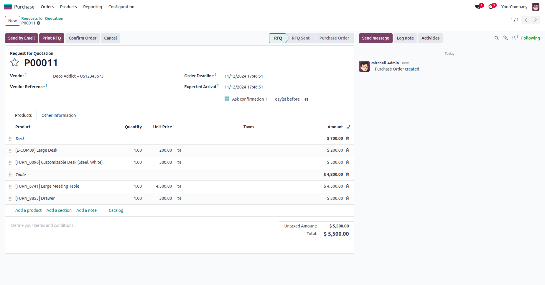 Section wise subtotal in purchase order.