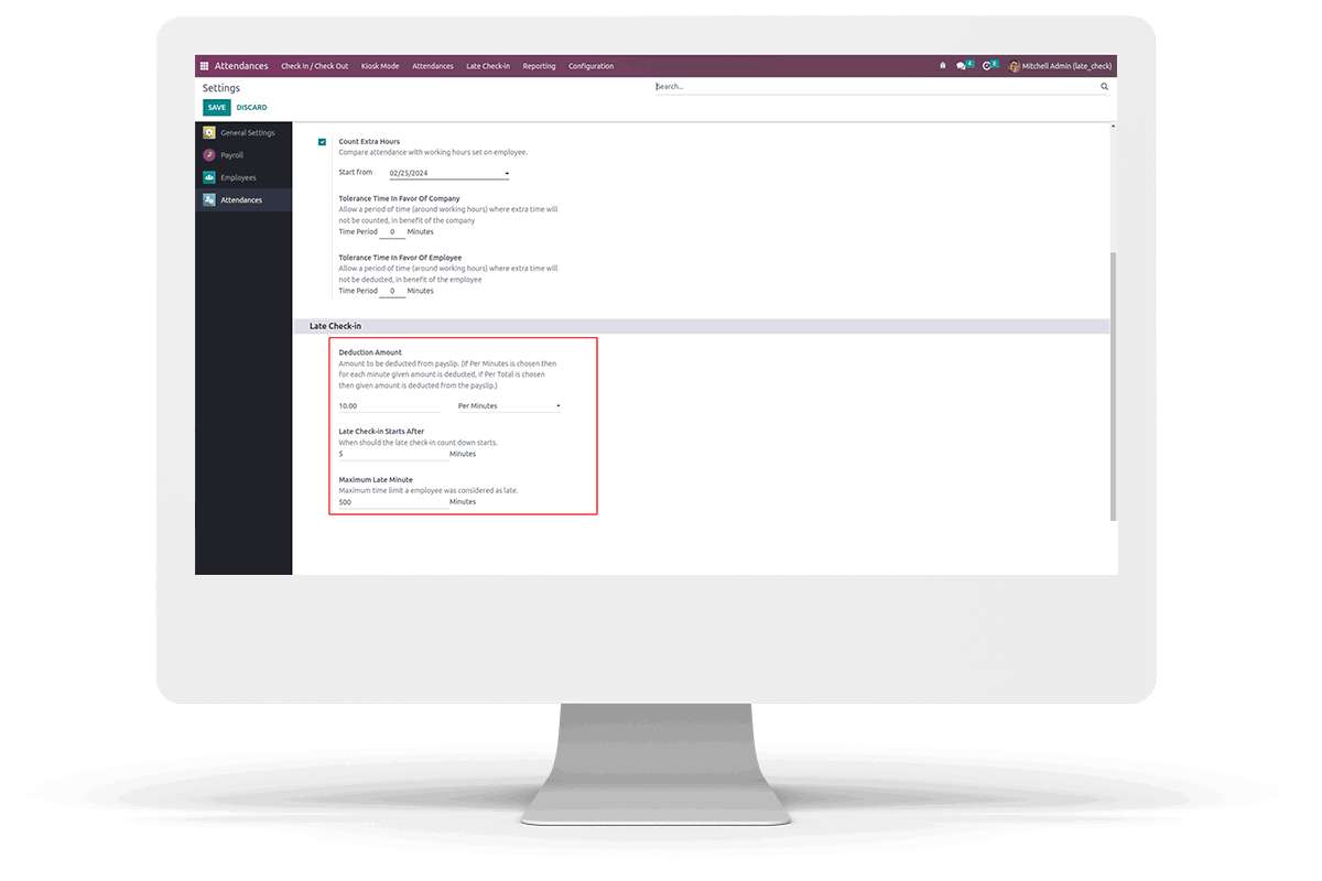 Manager Can Approve or Refuse the Late check-in in the case of deduction
