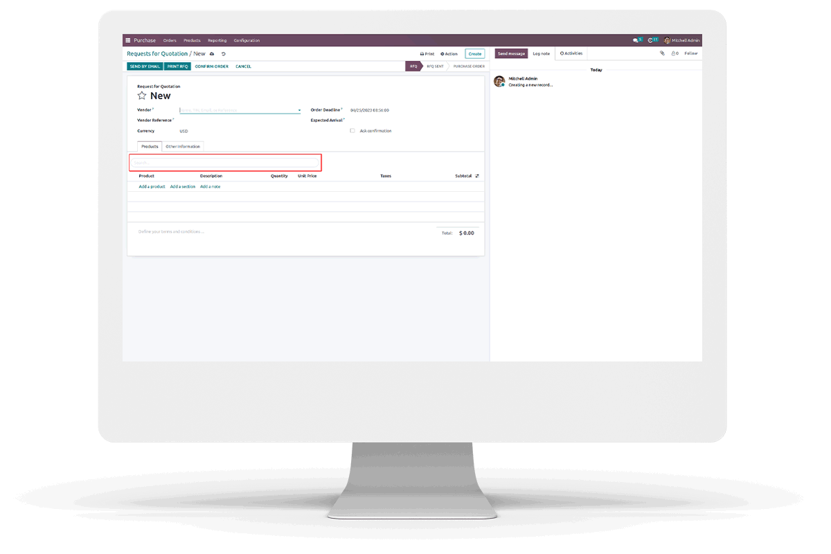 A search bar is visible above the One2many field with 'one2many_search' widget