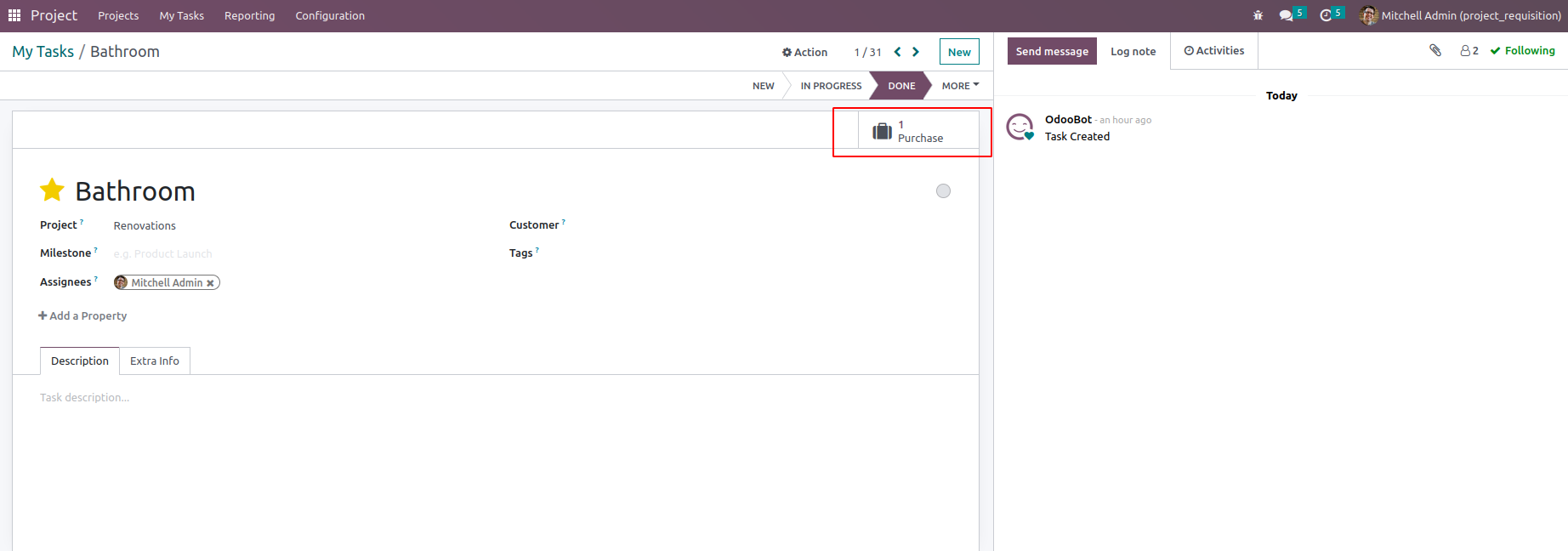 Purchase tab in project form shows the count of purchase agreement of a corresponding project.