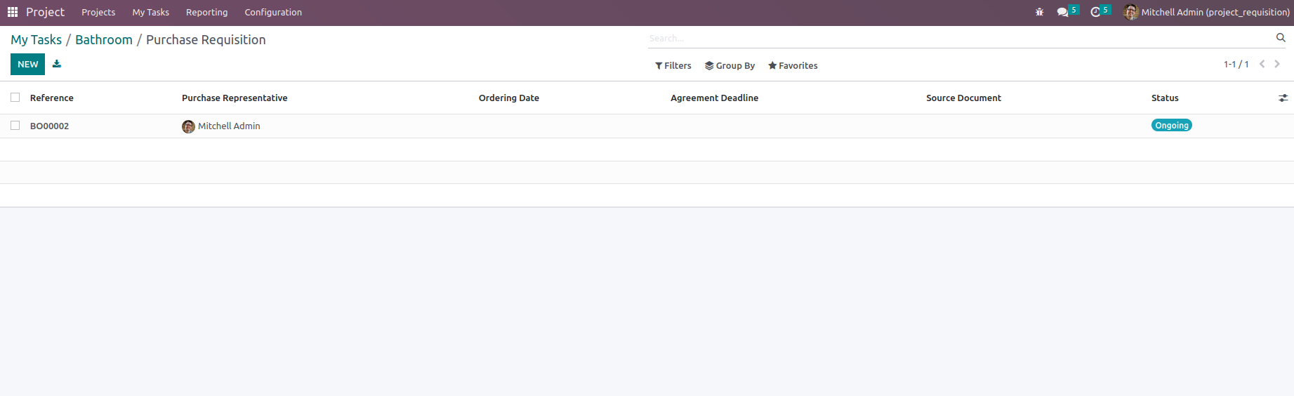 From the project form, by clicking the purchase tab, user can directly create new purchase agreement.