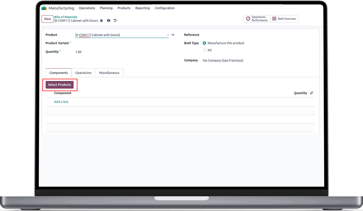 • Create New BOM From Product Variants List View by Selecting Multiple Products as Components.