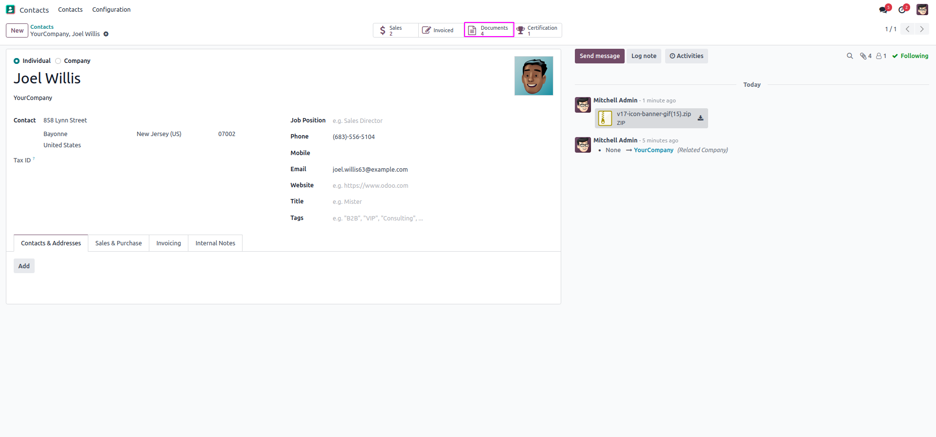 We Can See A Smart Button Documents Click On This To See The Contacts Documents.
