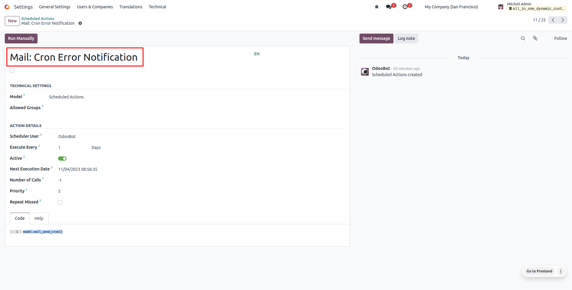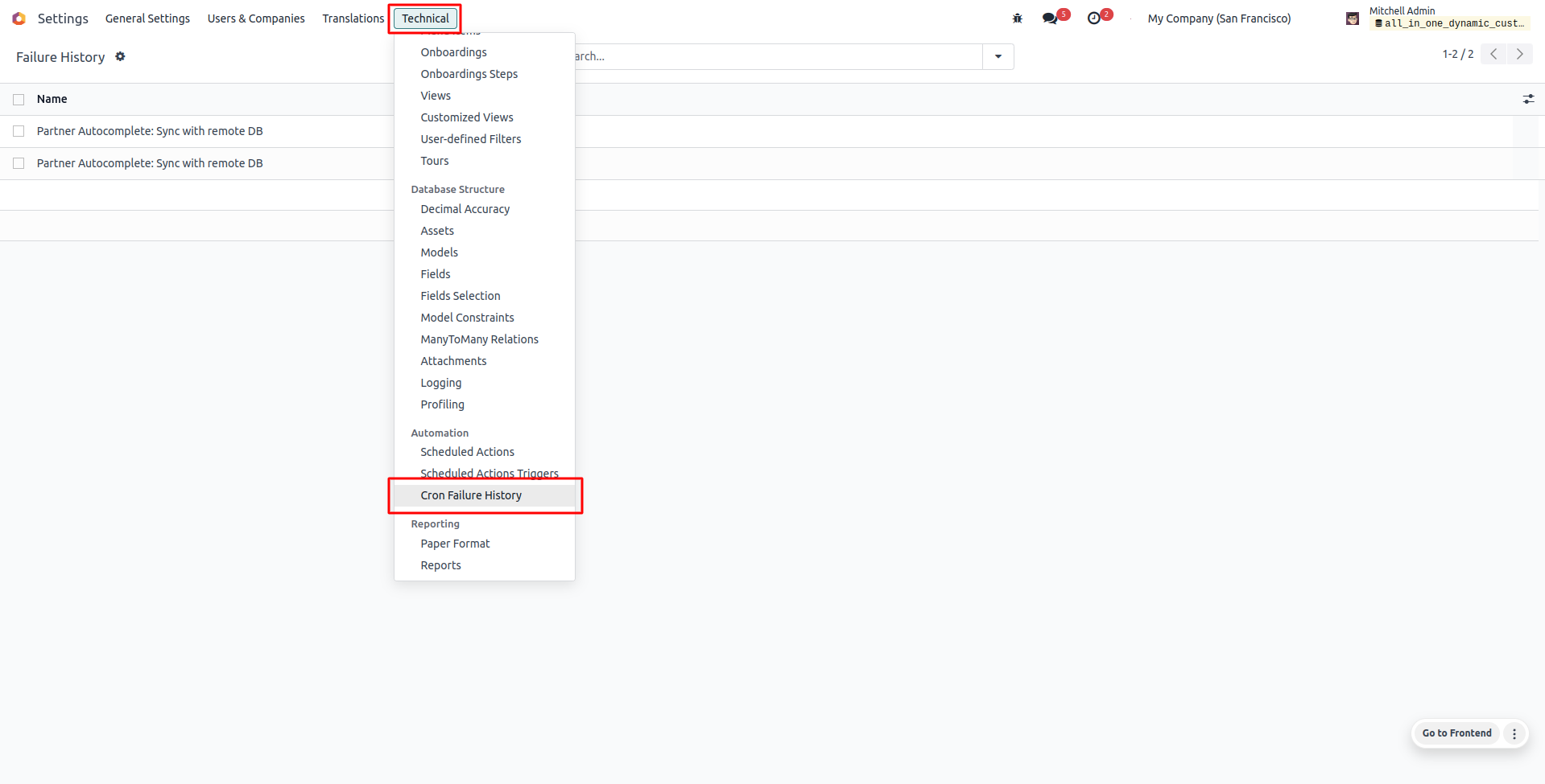 Mail Contains Report of Failed Cron Actions