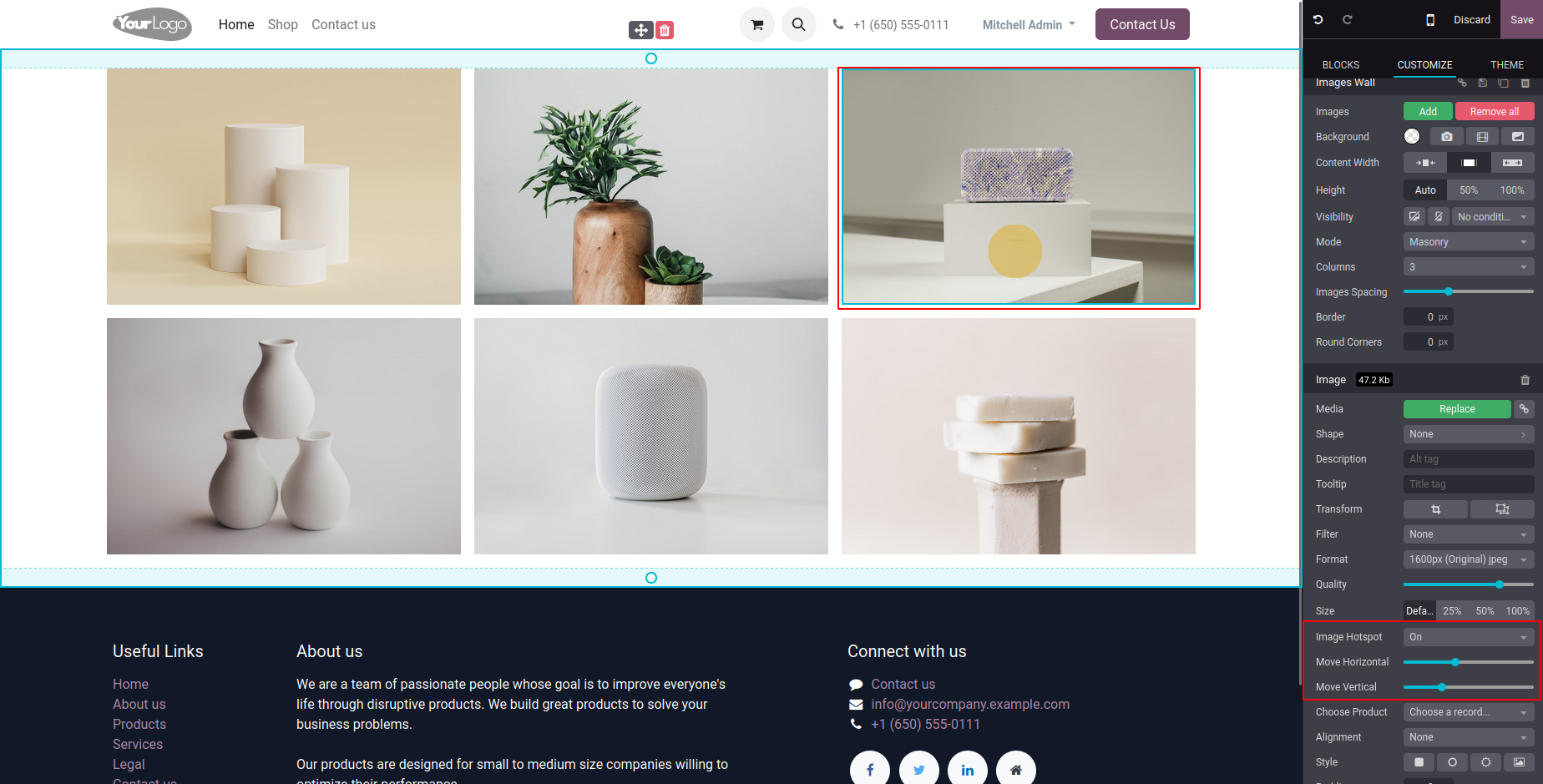 Click on the image hotspot to redirect to the shop product page that was configured in the snippet options.