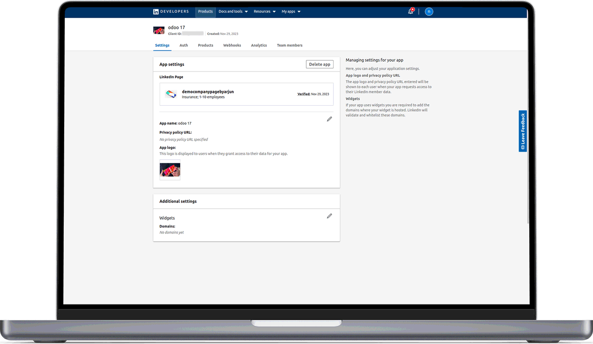 Setup a LinkedIn App with proper information. By visiting this link LinkedIn Developers