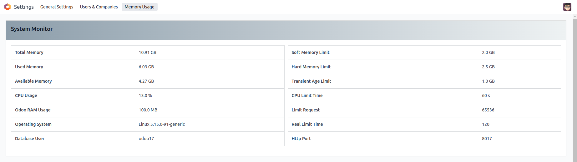 After installing the module, the settings will have a new menu called "Memory Usage".
