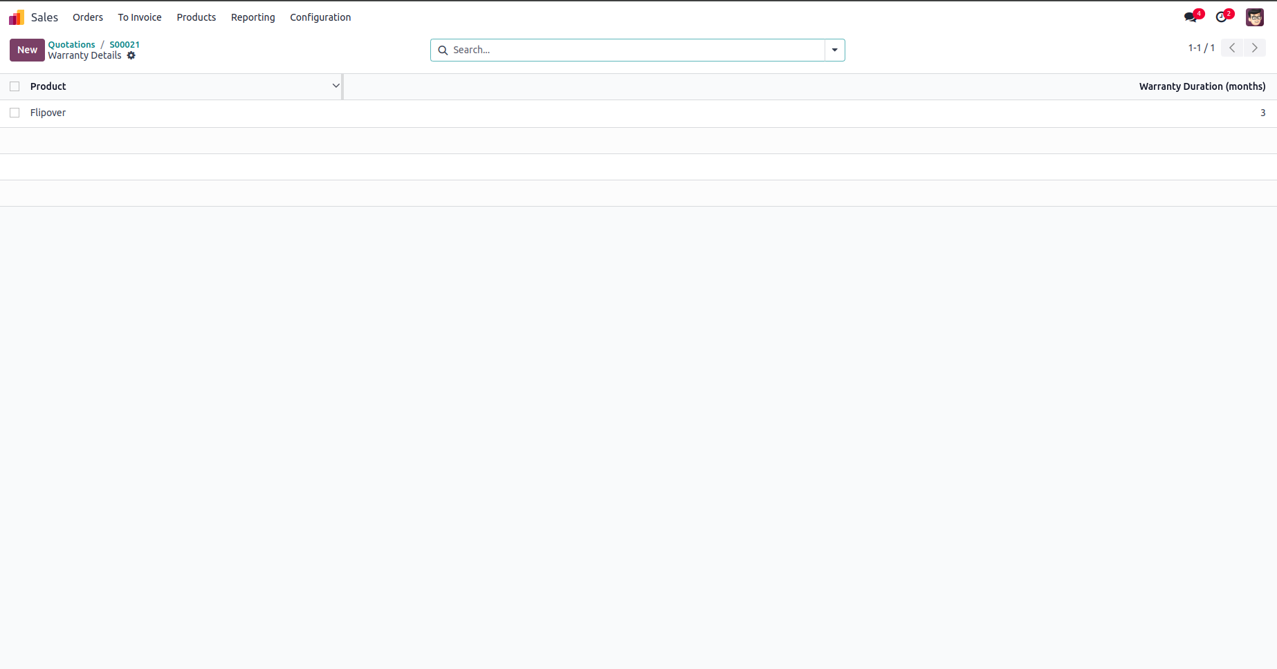 Detailed Warranty Management View.