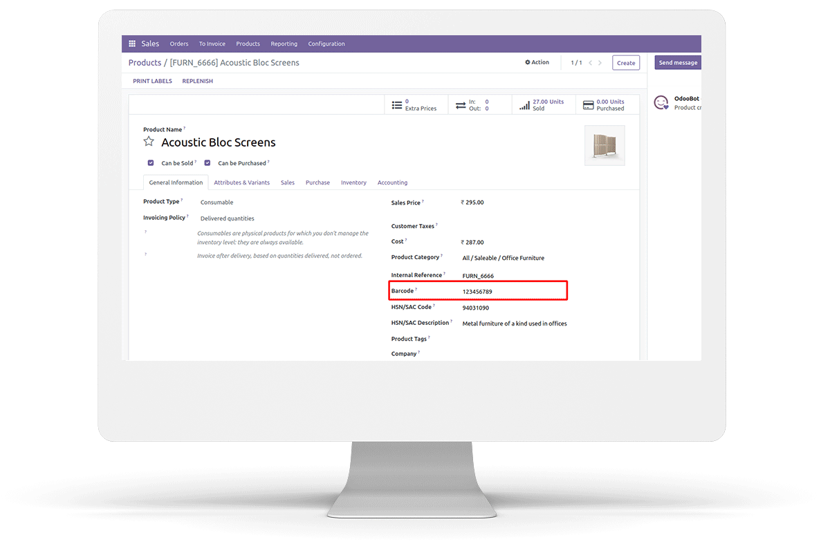 Just click on the barcode field and scan the product now the item is added to the order line.