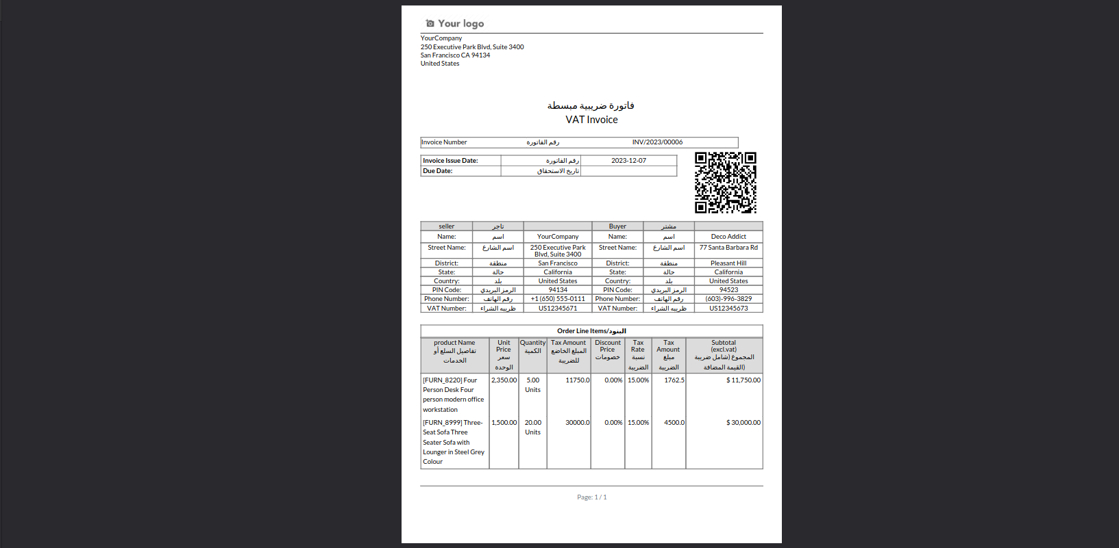Create VAT invoice report Manually Generate or Generate QR Code when invoice validate/post.