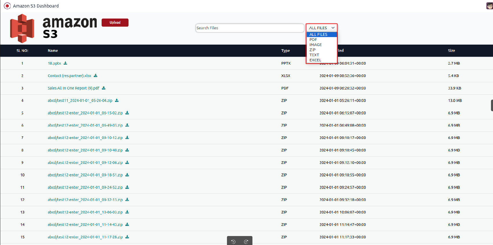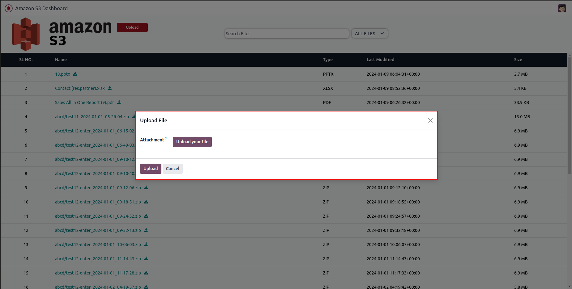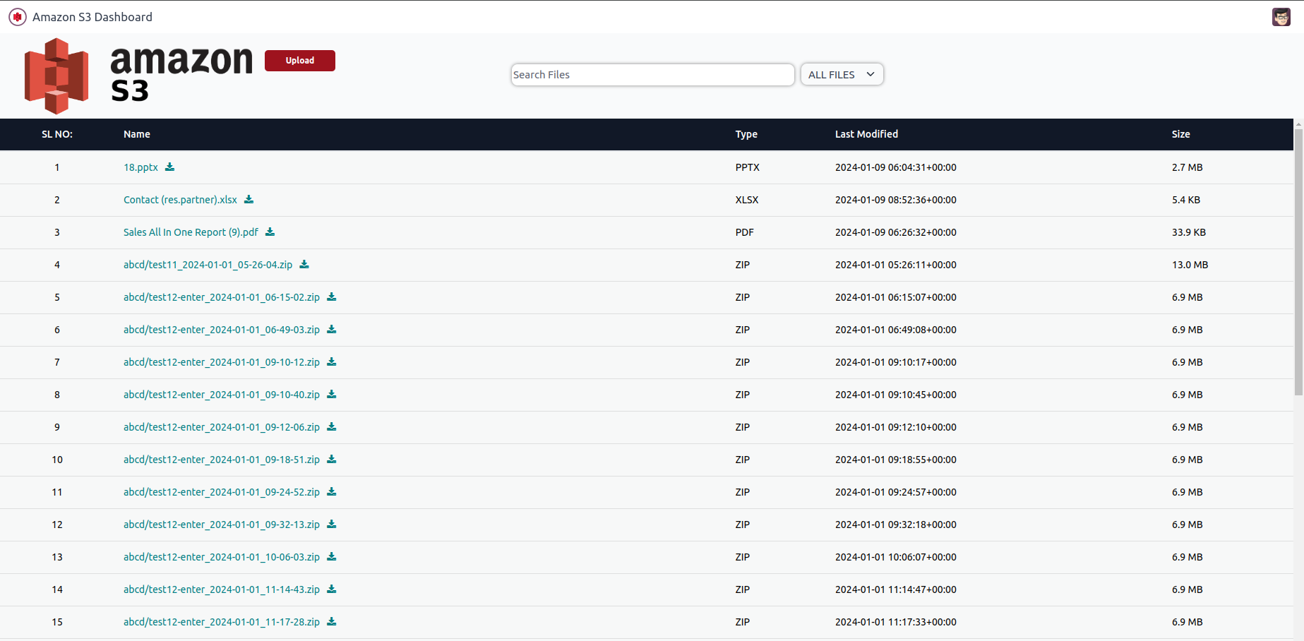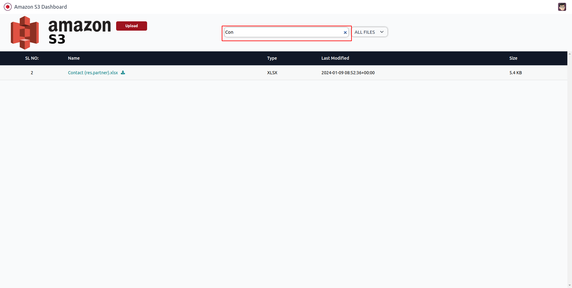 Displays all the files from Amazon S3.