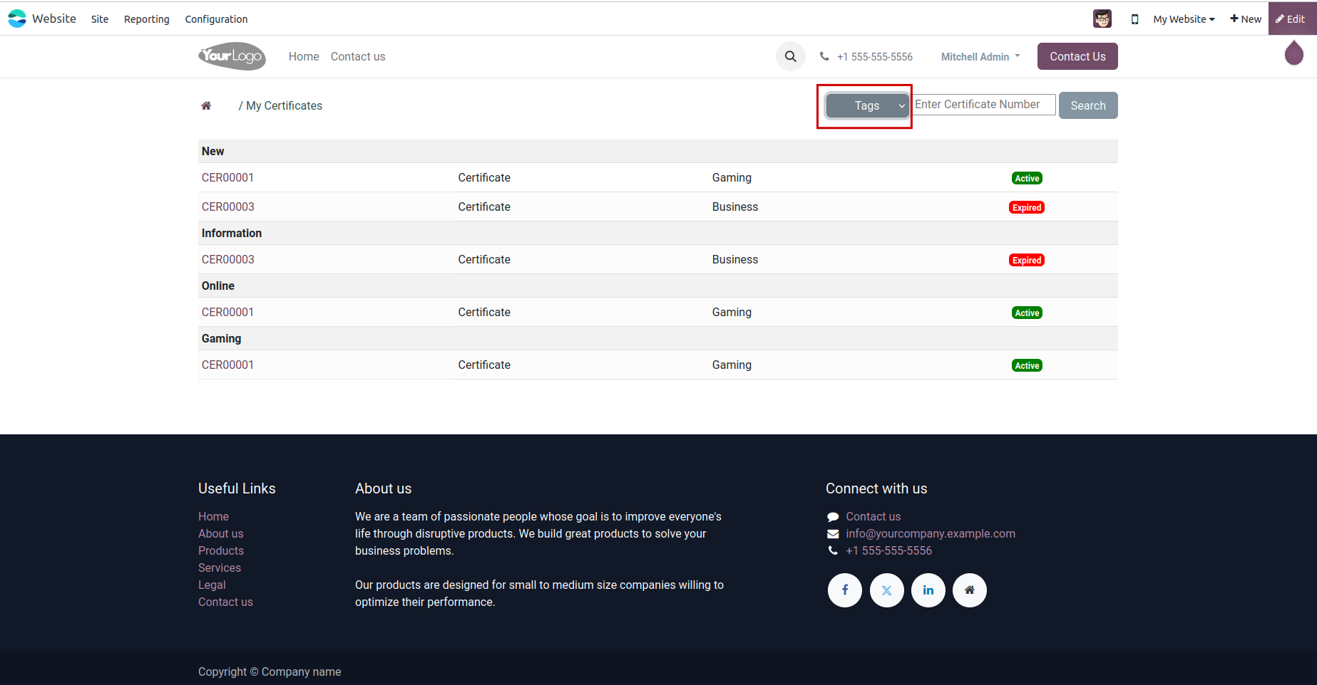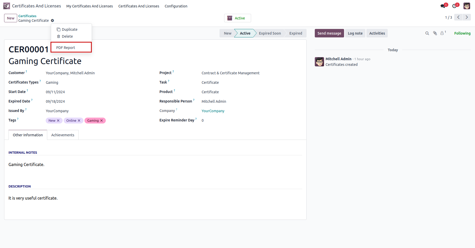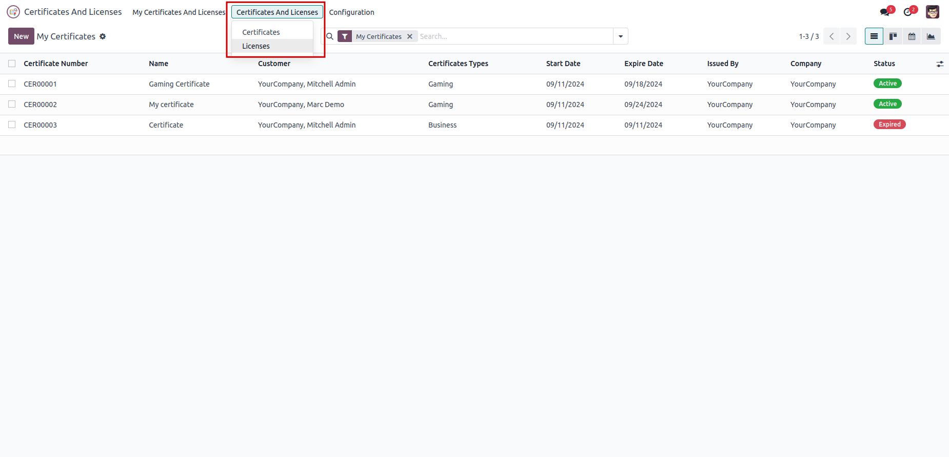Certificate And License Customer View -> Customer Can Only See Their Own Certificate.