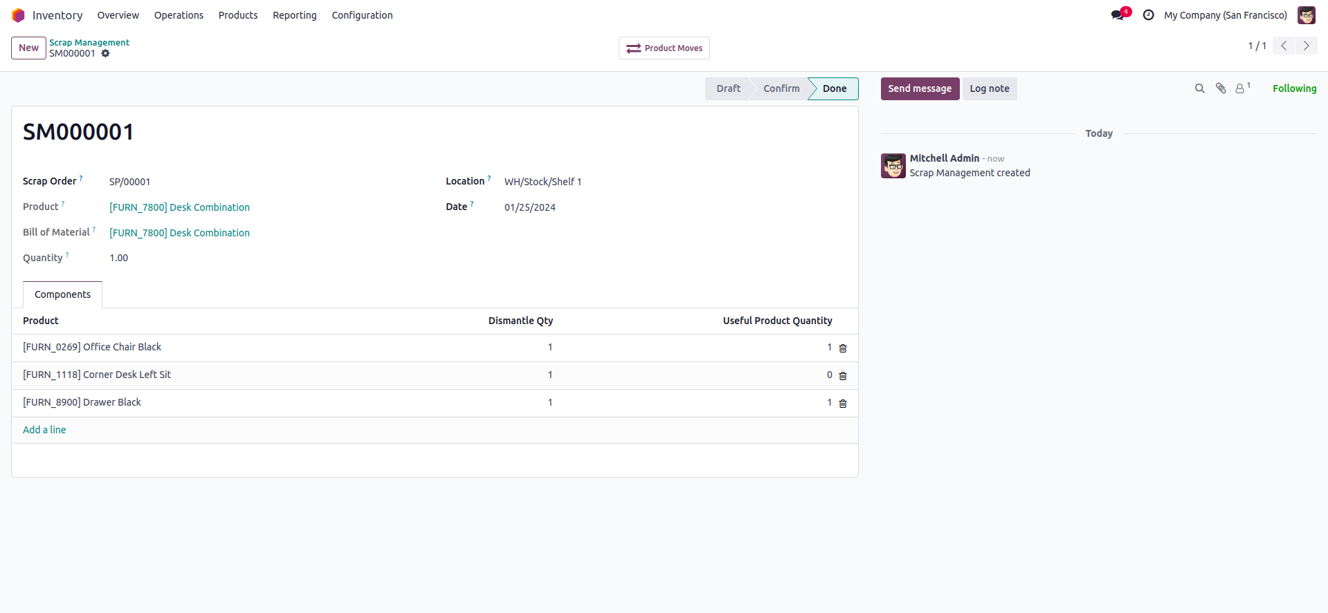 Managing Scrap in a company and dismantling the product and reuse non defected component.