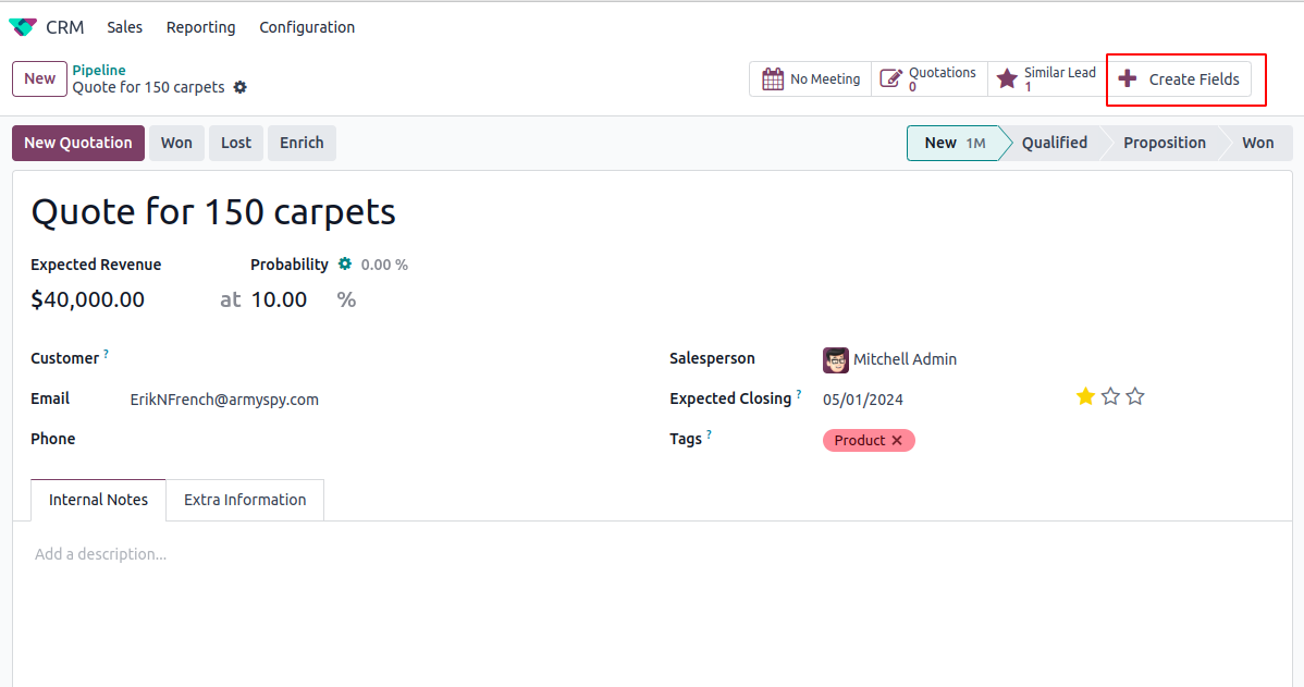 Tool For Adding New Fields In Odoo CRM Without Any Technical knowledge.