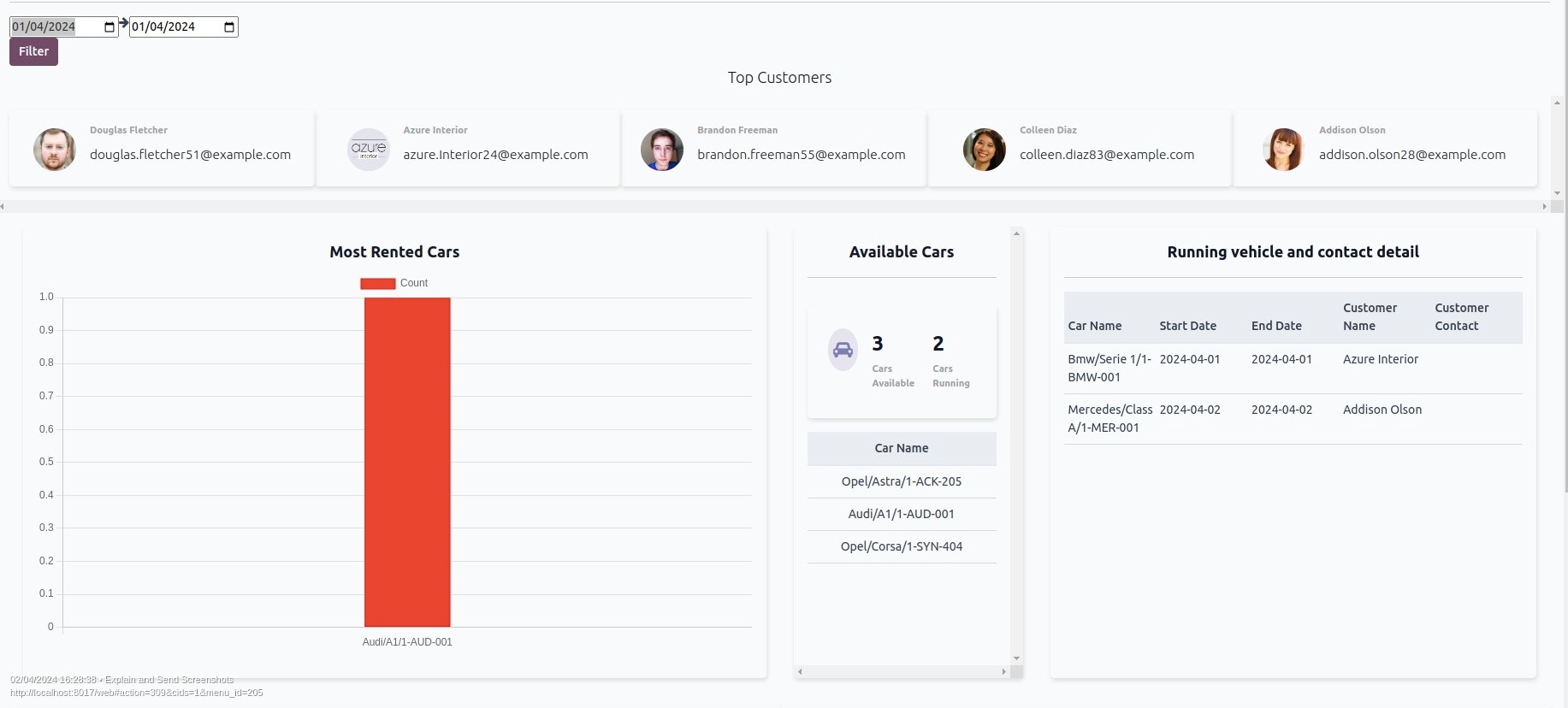 This Dashboard Module Enhances the Fleet Rental Management System by Offering a Centralized View of Crucial Metrics and Analytics.
