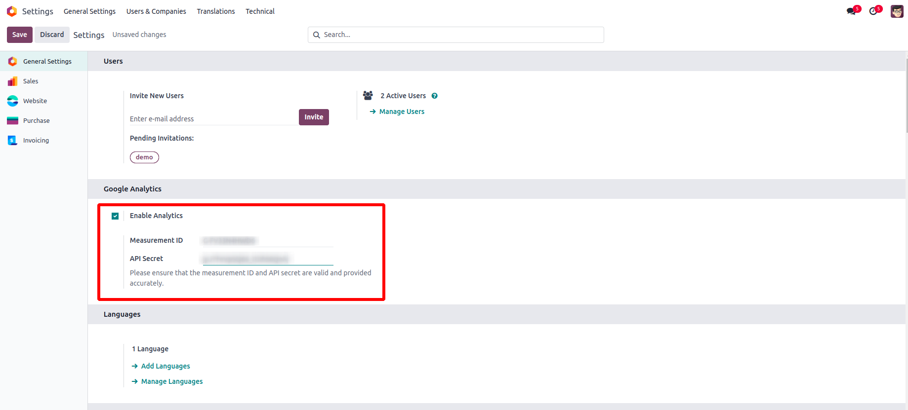 The module can send events to Google Analytics when specific actions occur in the Odoo backend, such as confirming a sale order, purchase order, or invoice. This data helps you understand how your business processes are performing and make data-driven decisions.