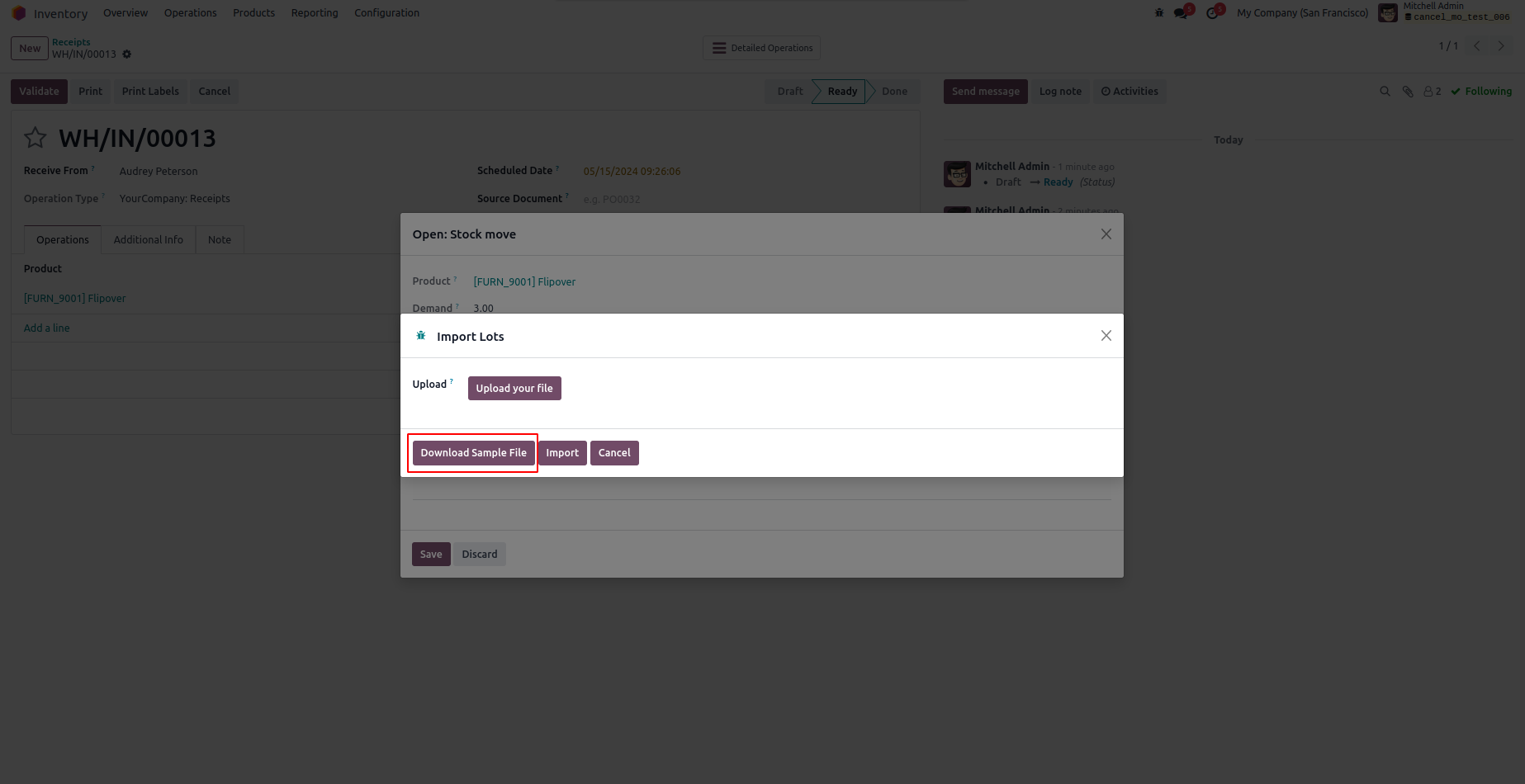 User can edit/refer the sample sheet to import the lot(Use the same headers)