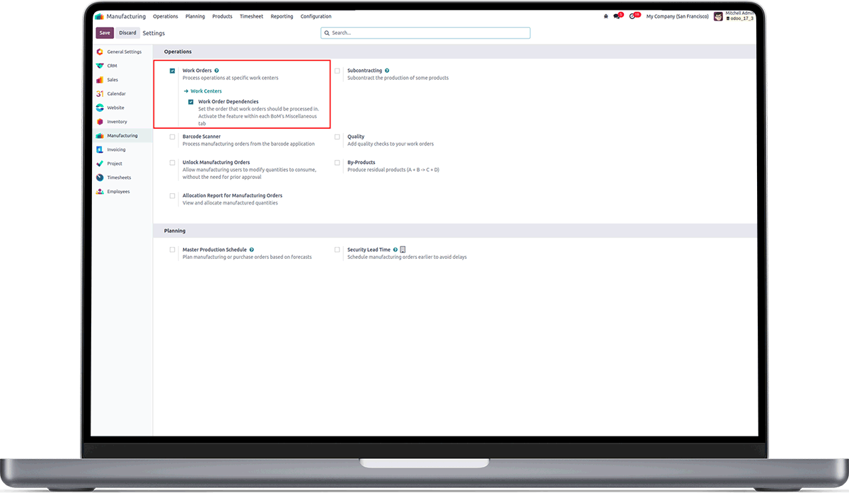 A project and task will be created to the corresponding manufacturing order and work order. There will a boolean field inside the project to identify it as manufacturing order.