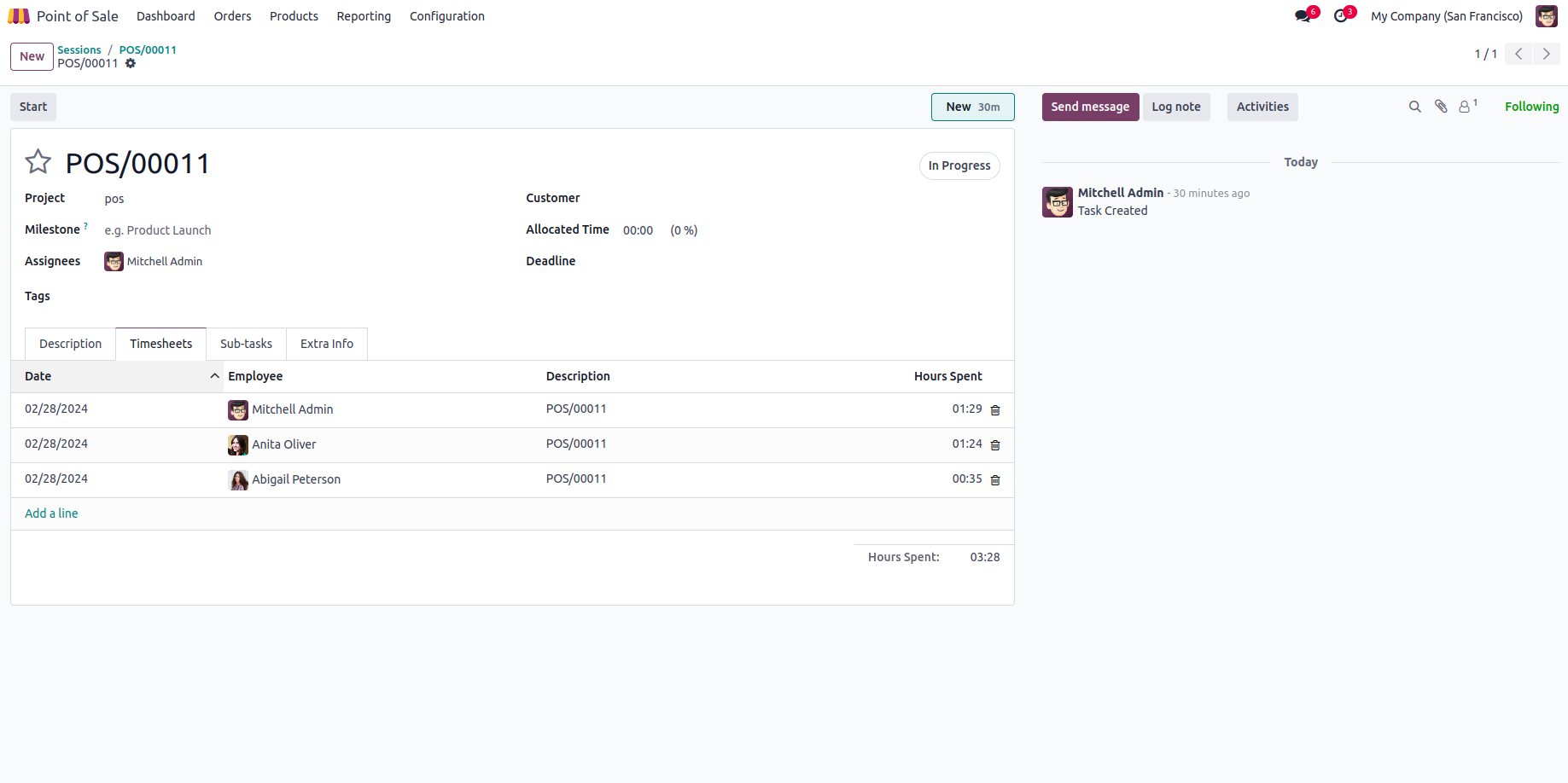 A task will be created in the name of the session in the project selected in the POS configuration settings.