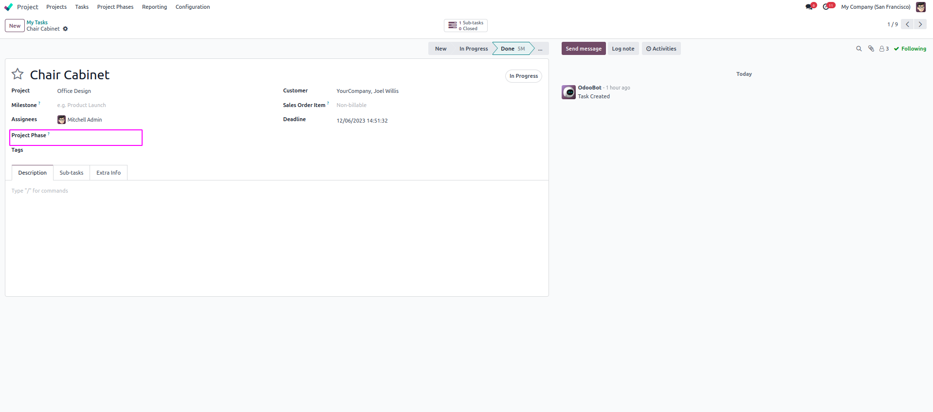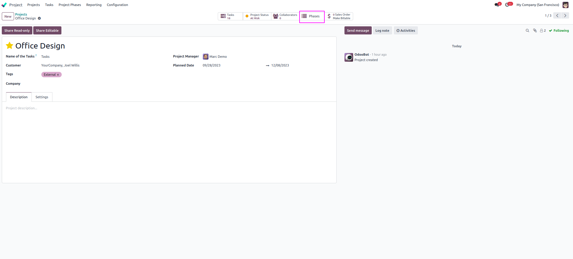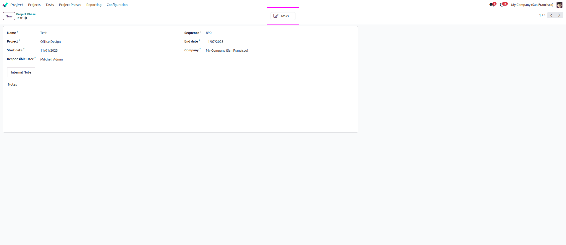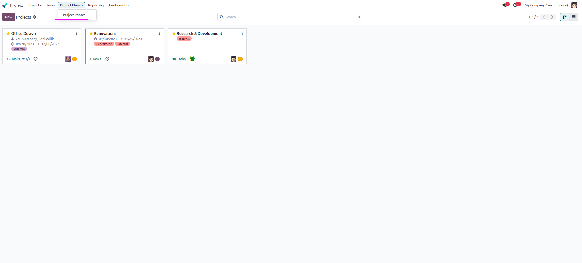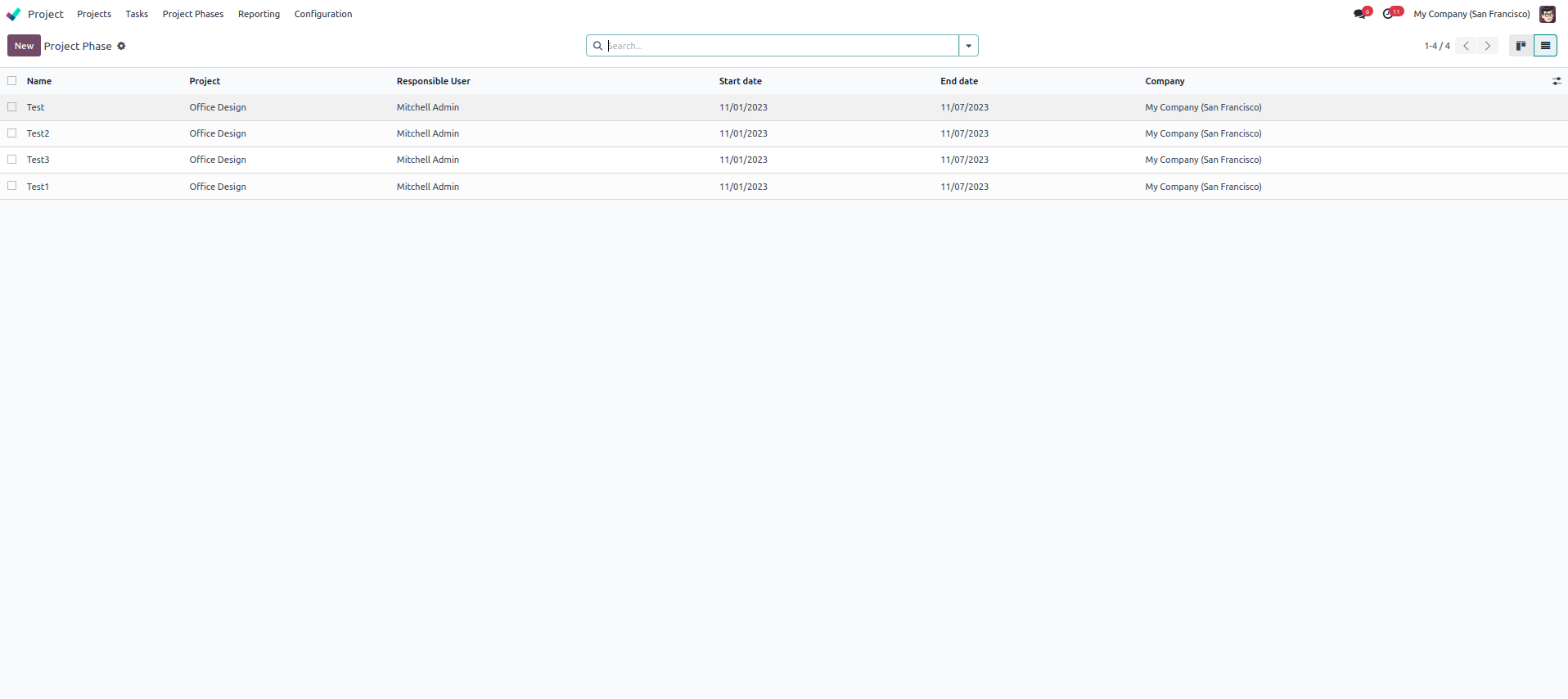 In form view of Project, you can see a smart button 'Phases' to view phases of corresponding project.