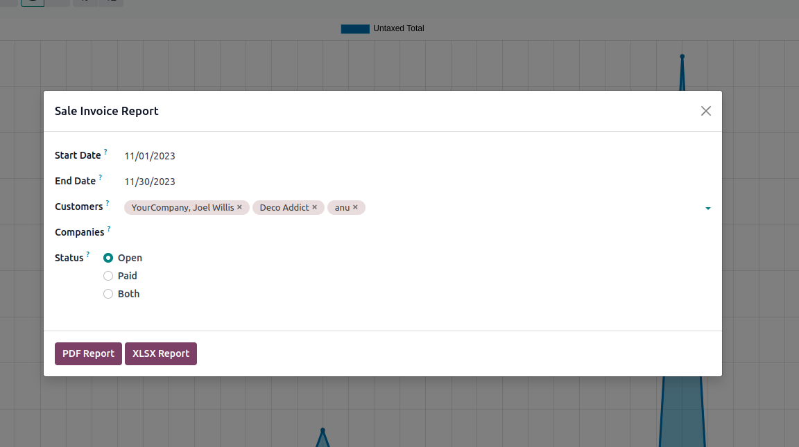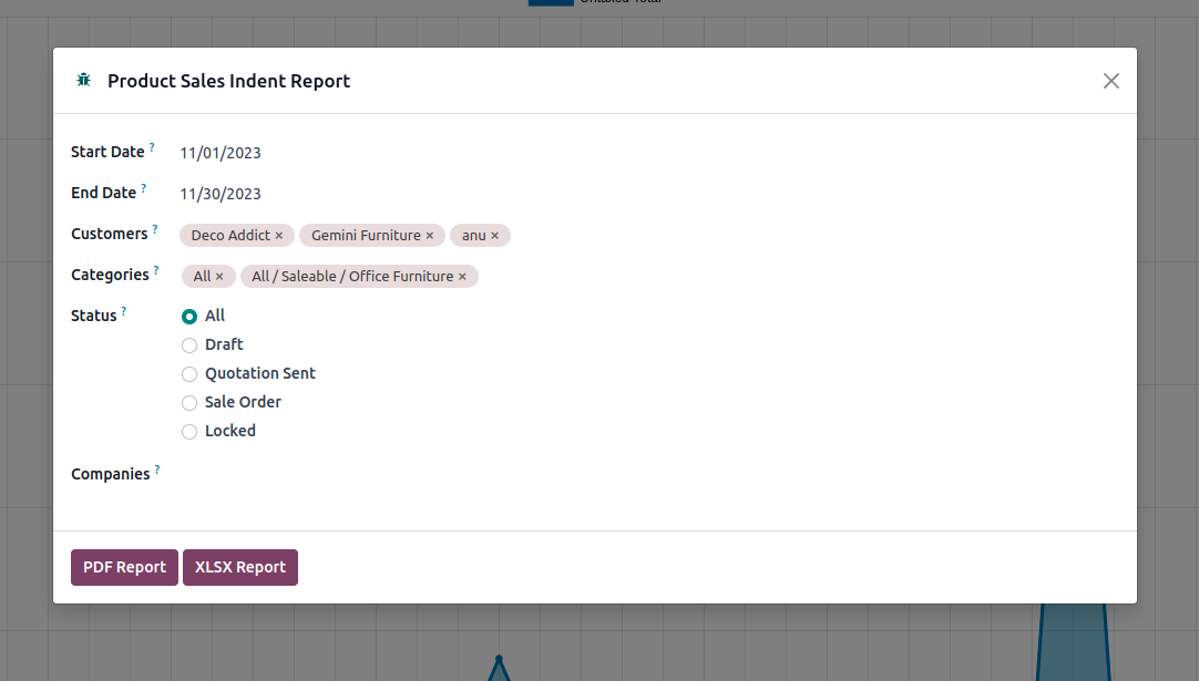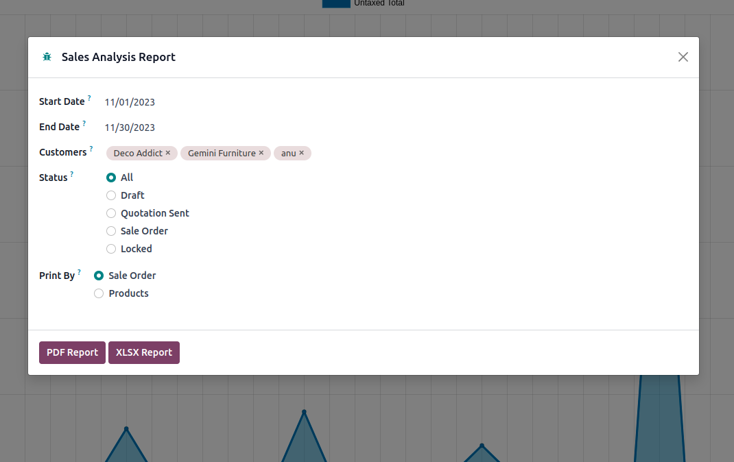 We can apply different filters to print reports.