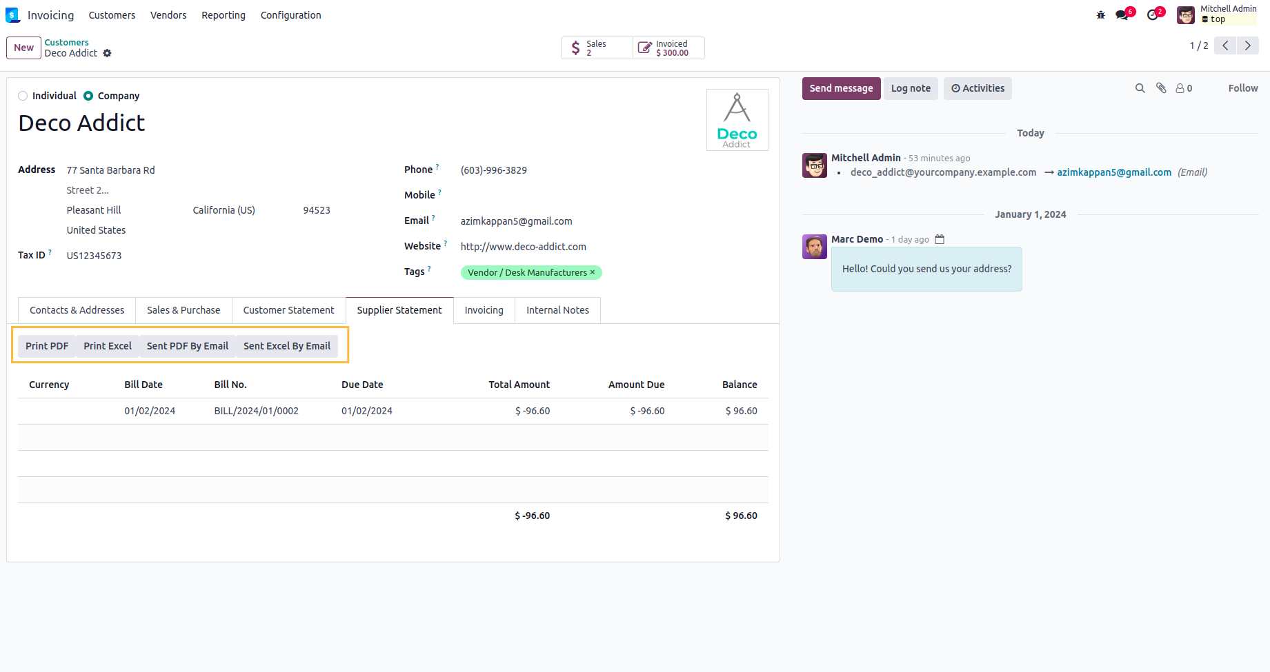 Customer and Supplier Statement in Contacts.