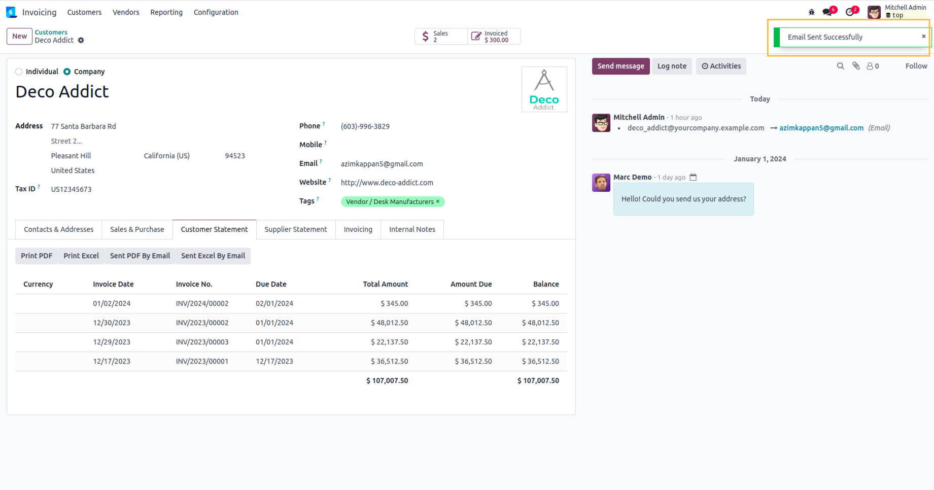 Auto send monthly statement to customer.