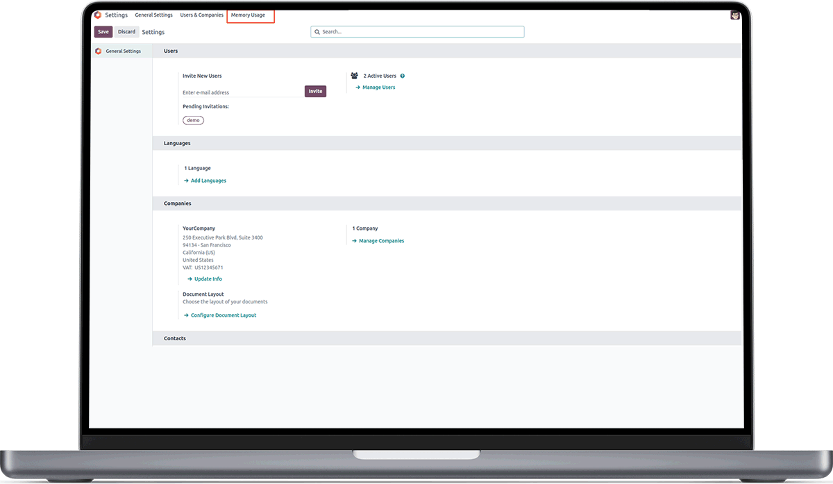 After installing the module, the settings will have a new menu called "Memory Usage".