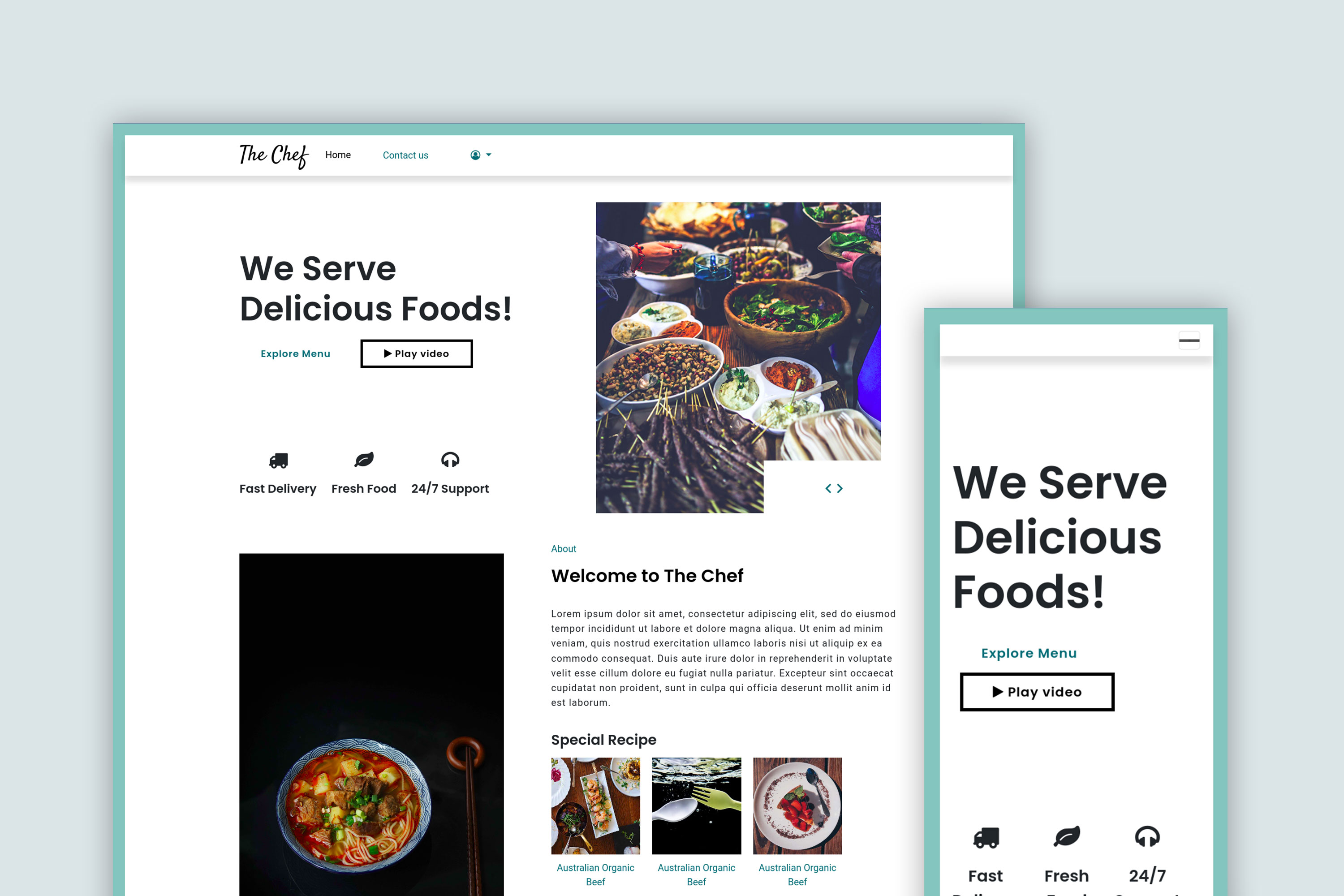 Theme The Chef is a popular attractive and unique front end theme for your restaurant website. Many custom designed snippets facilitates to add better user experience. Just drag & drop the building blocks you need to easily build your layout. All layouts are made of sections, that you can easily combine to fit your specific project.It has simple and more attractive snippets.