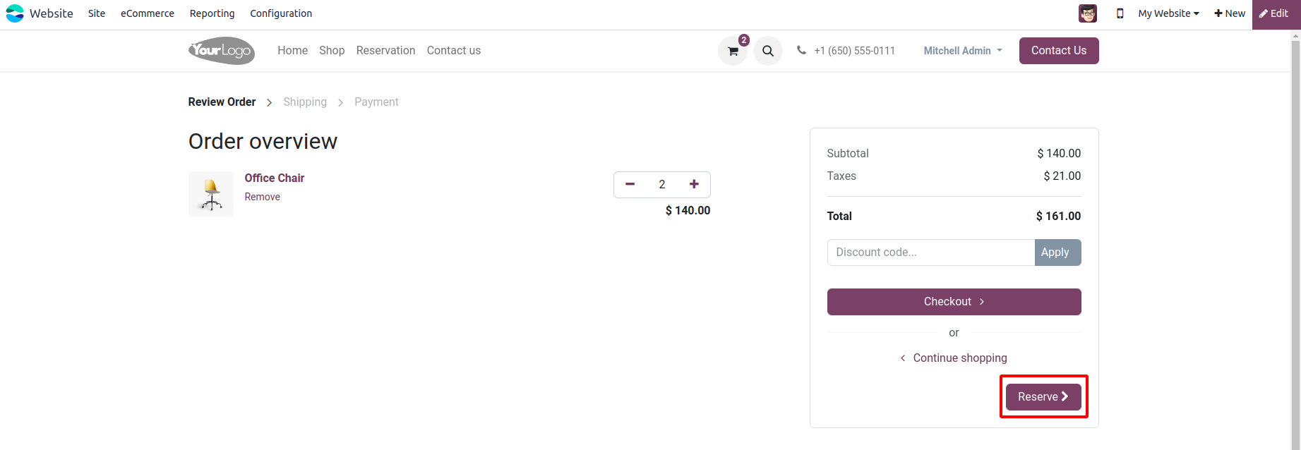 By enabling the 'Reserve Products' checkbox inside the product, the item can be reserved.