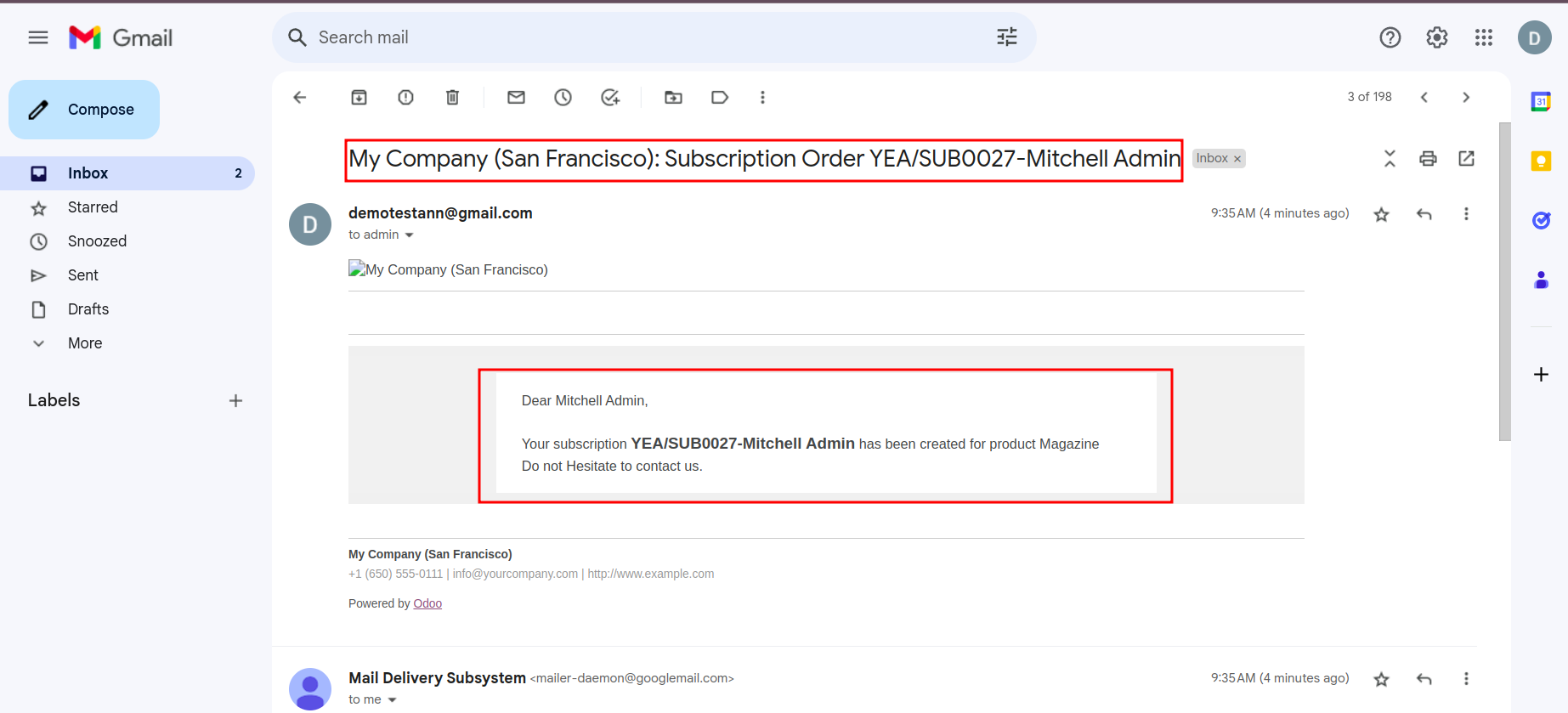 Send Mail After Auto Create Sale Order & Subscription To the customer.