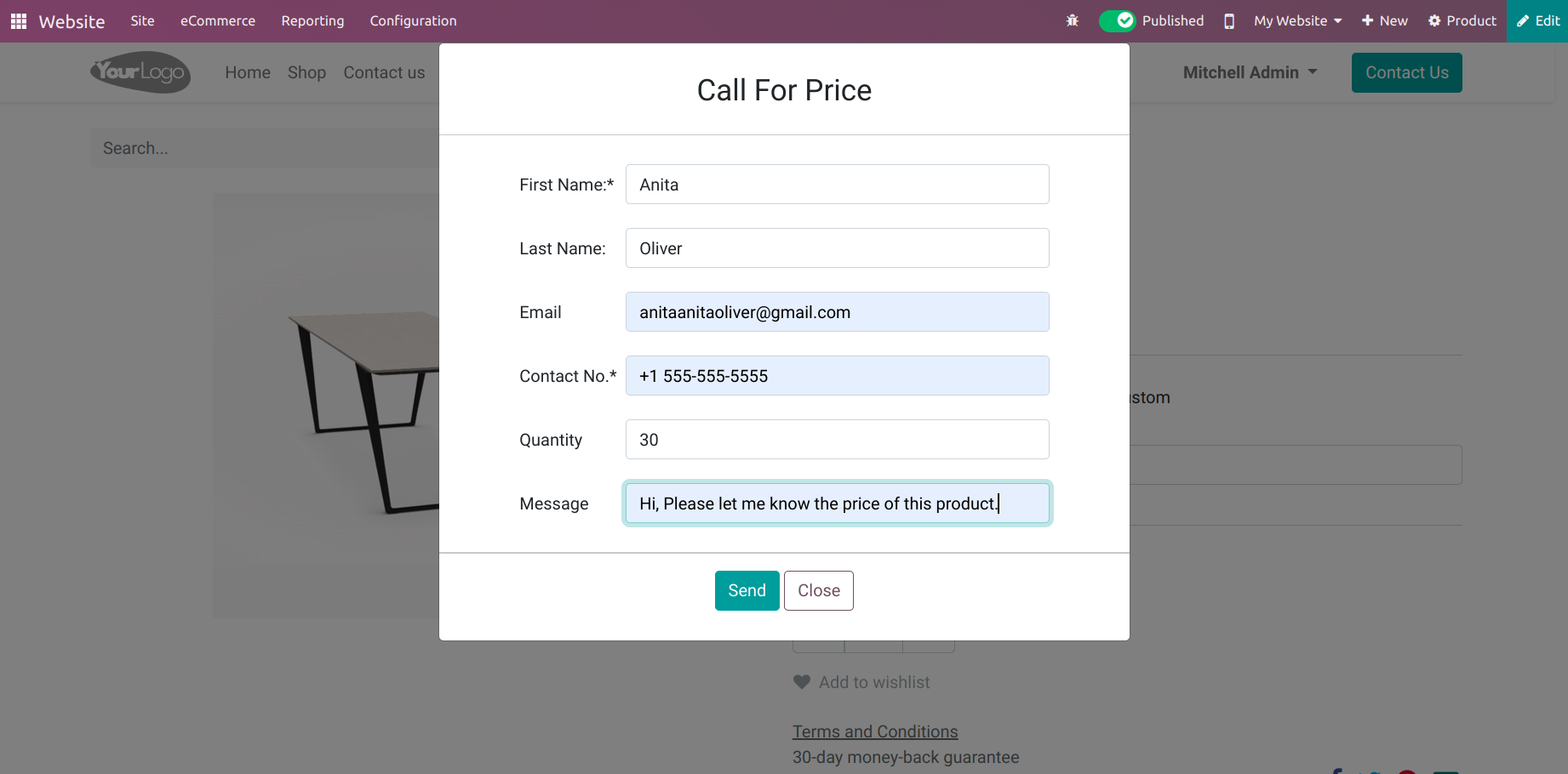 User need to enter these details inorder to get the price of the product. The request will send to merchant by clicking send button.