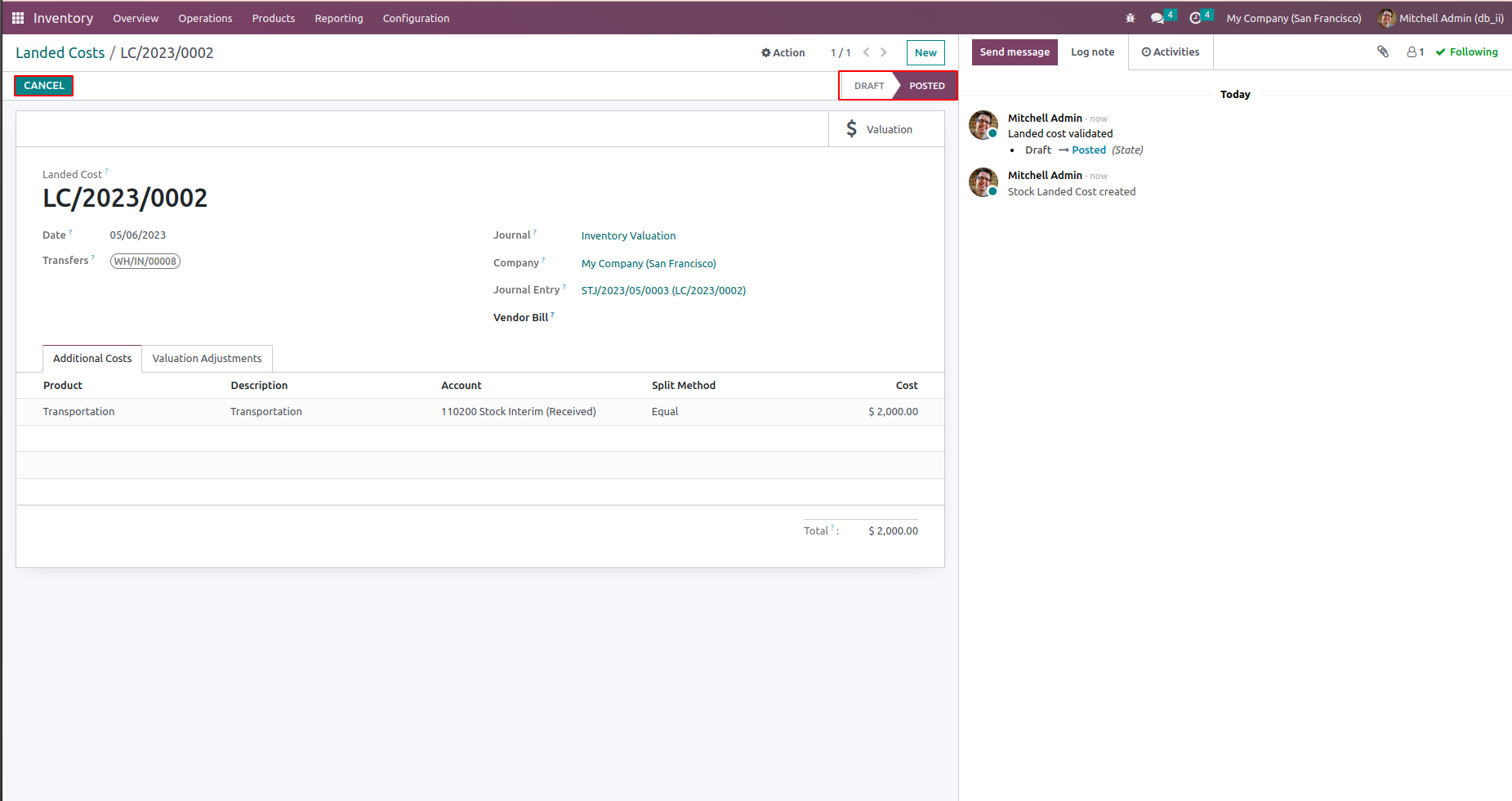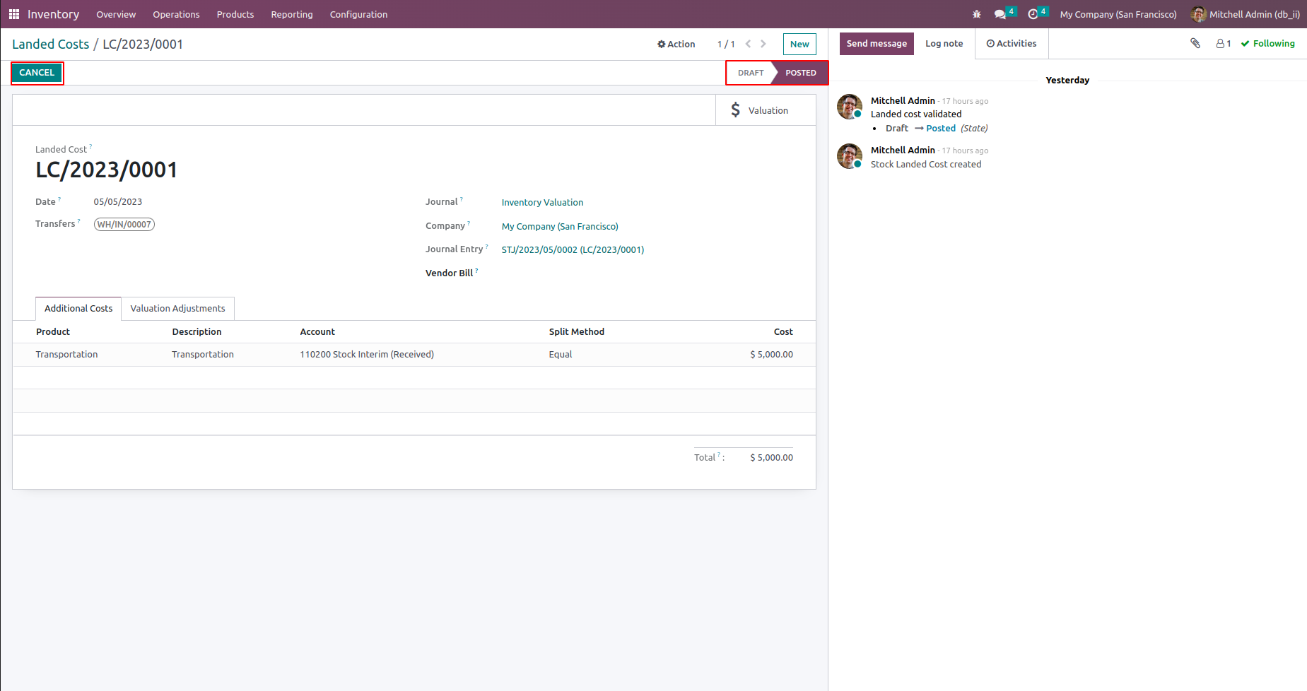 There are three ways in which you can cancel the Landed Costs.