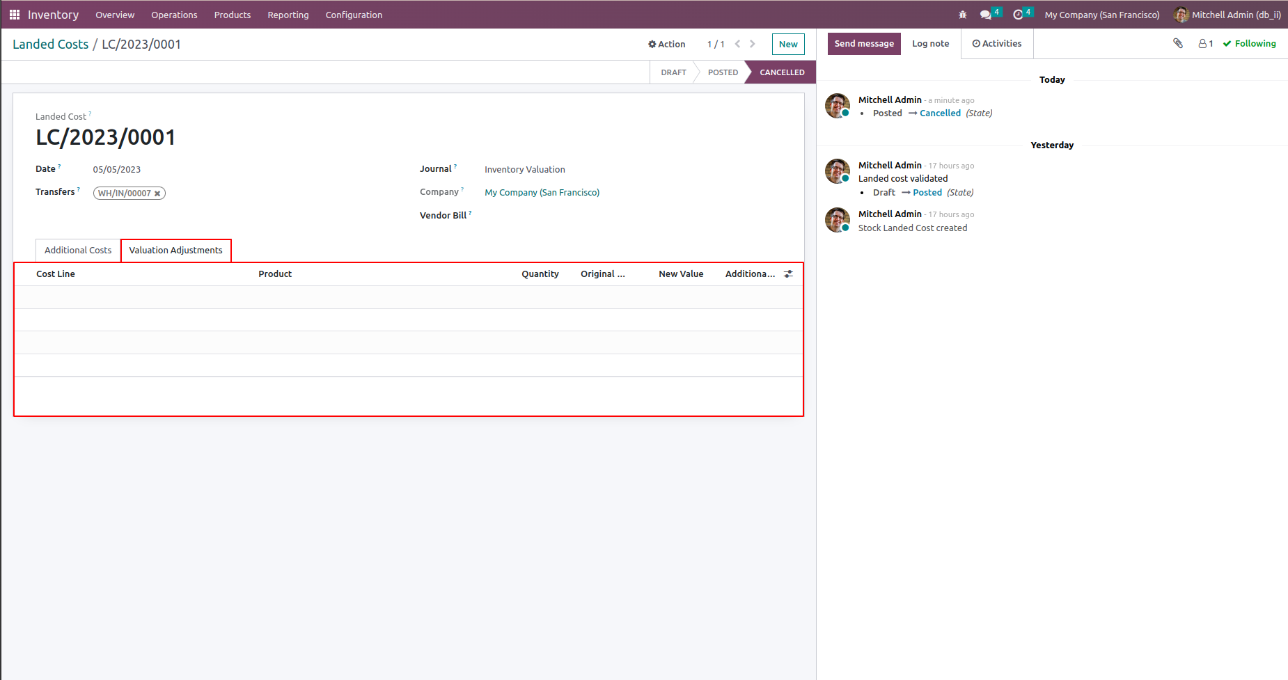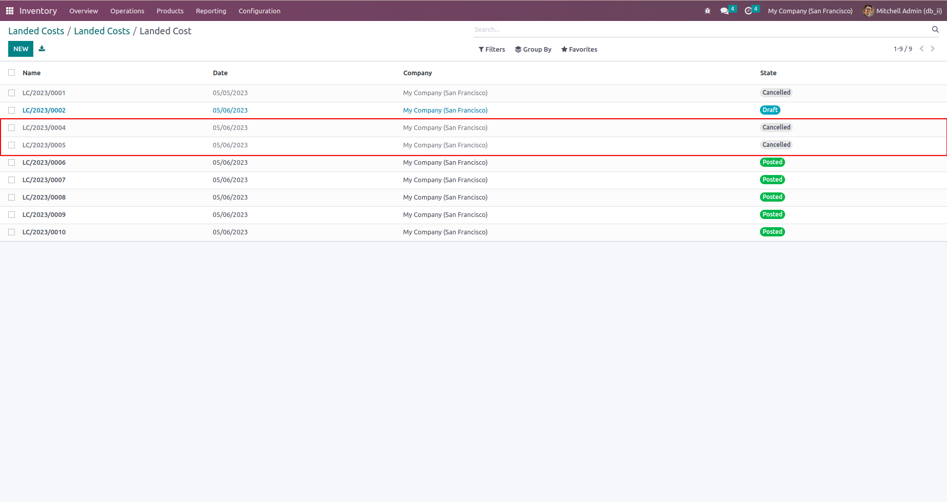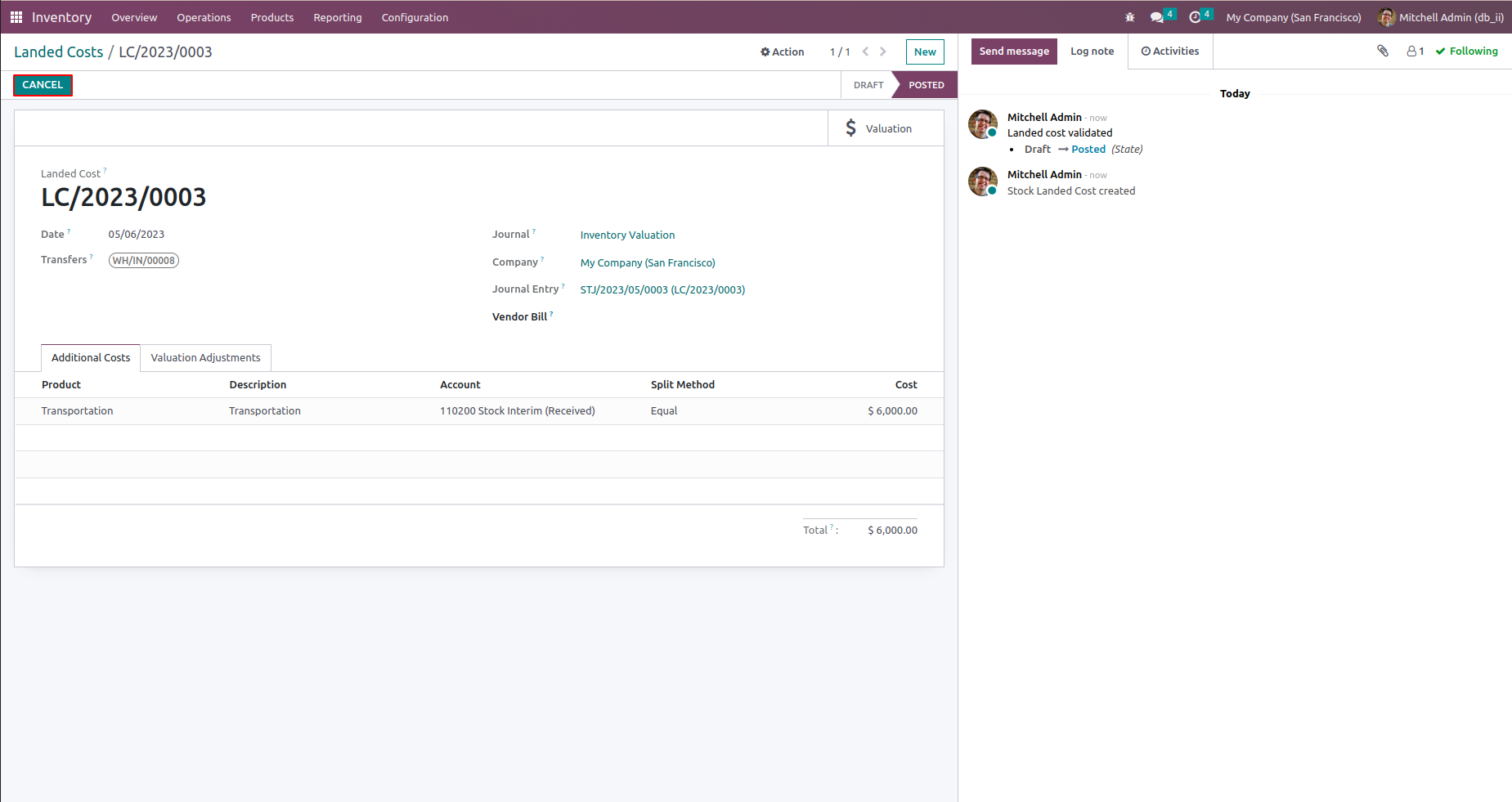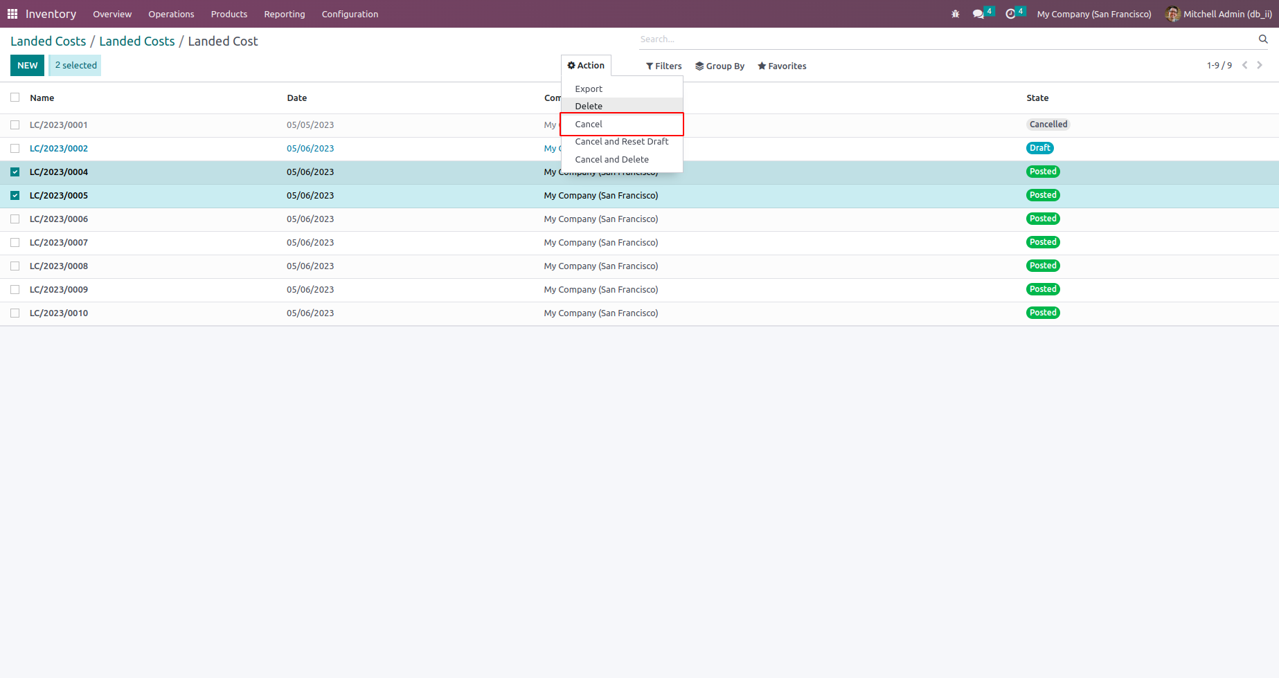 This module helps to cancel Landed Costs and allows you to cancel multiple Landed Costs from the tree view.