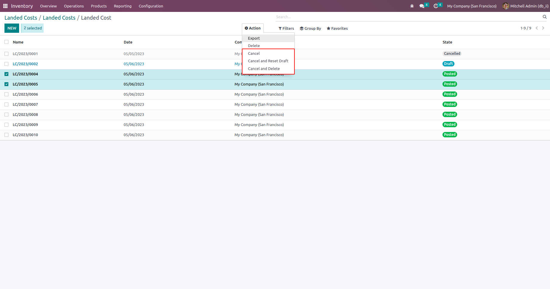 This Module Allows You To Cancel Multiple Landed Costs From The Tree View And Provides Three Ways In Which You Can Cancel The Landed Costs