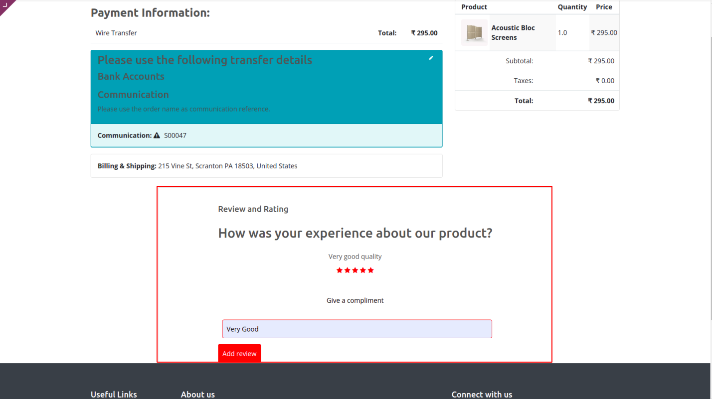 The comment and rating will get displayed in "Customer Order Comment" tab in the Form View of the corresponding Sale Order.