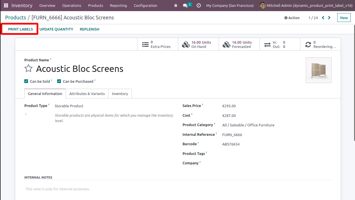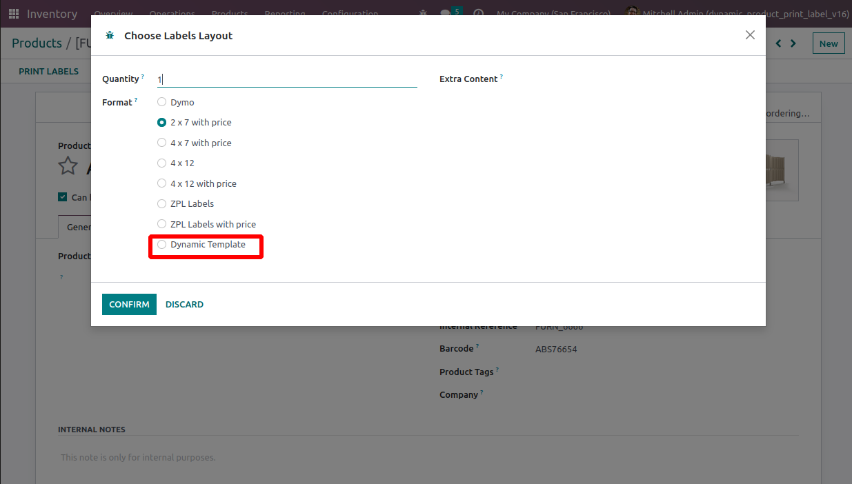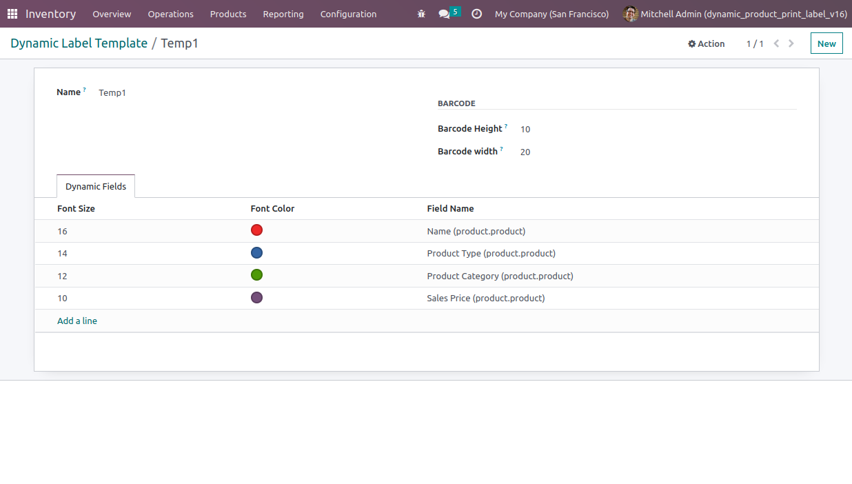 This Odoo App Helps to Print the Barcode or Label With Dynamic Fields By One Click.