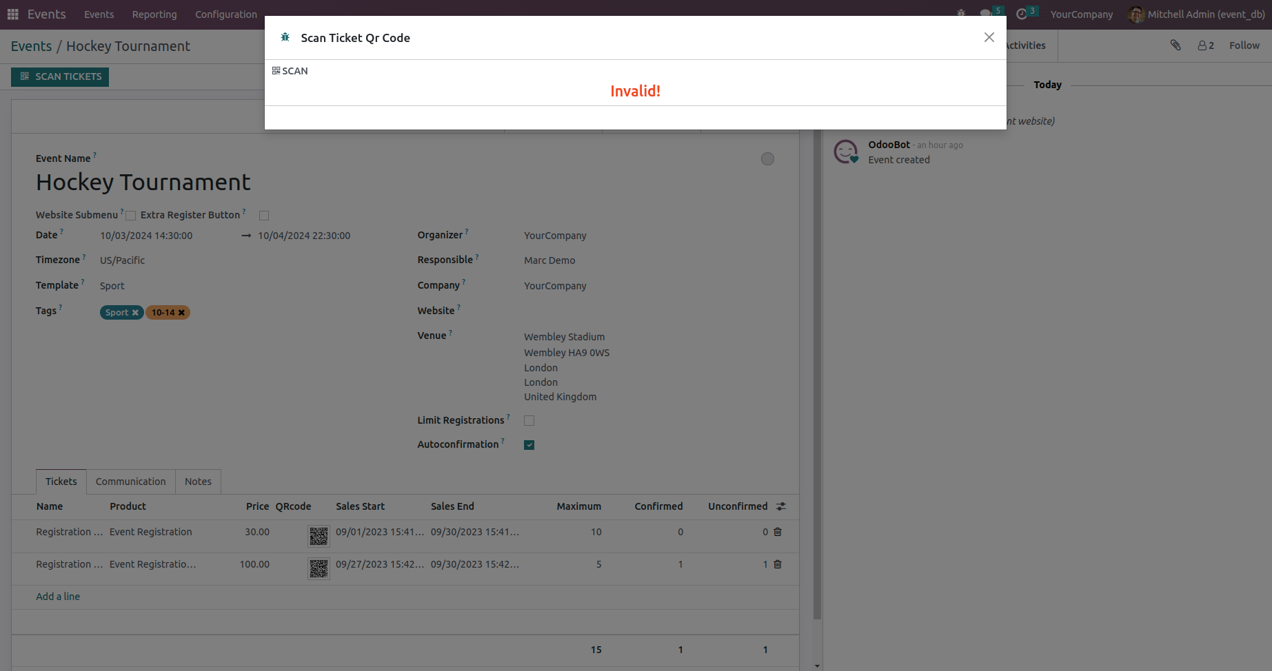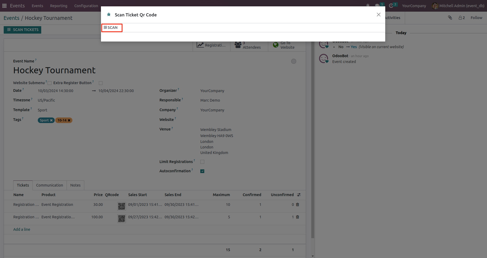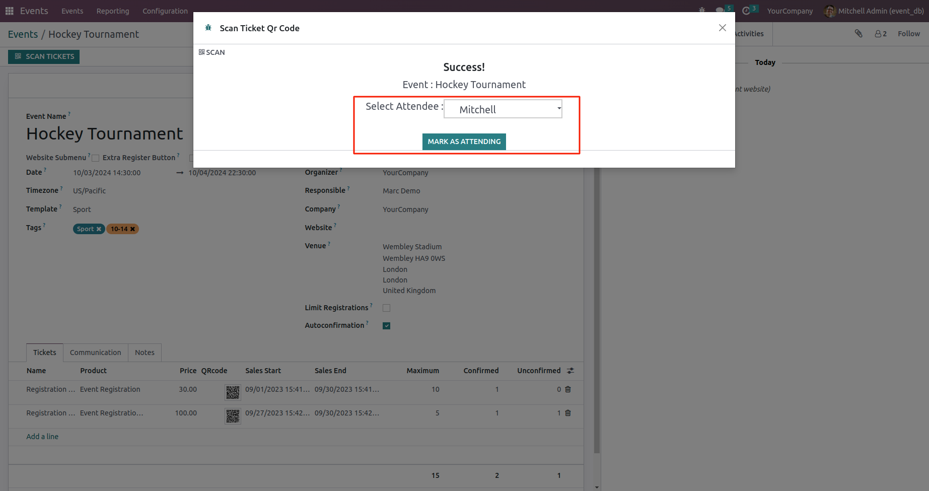 Sent Ticket contain QR code to Attendee by Mail on Confirming Registration for the Event.