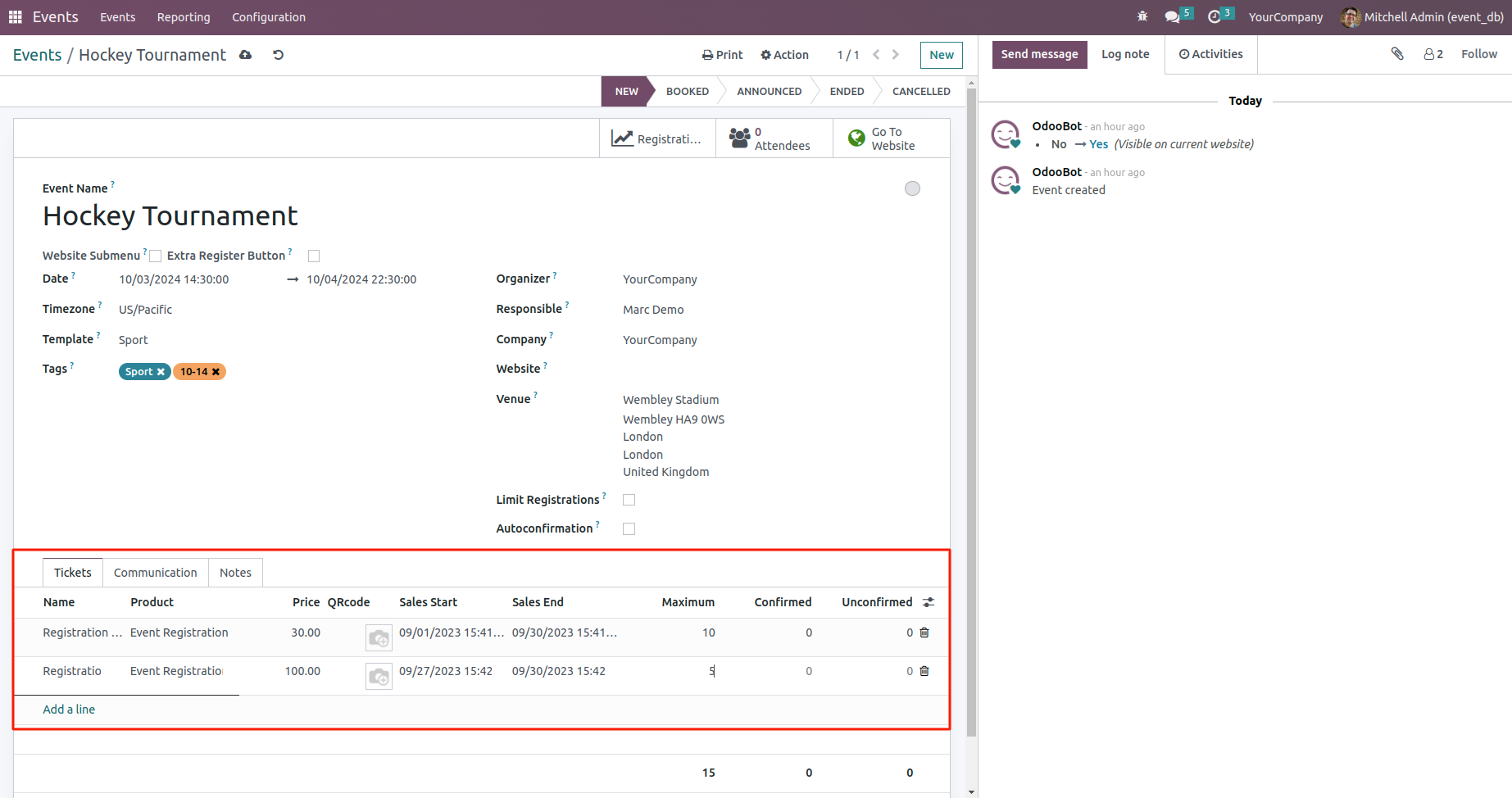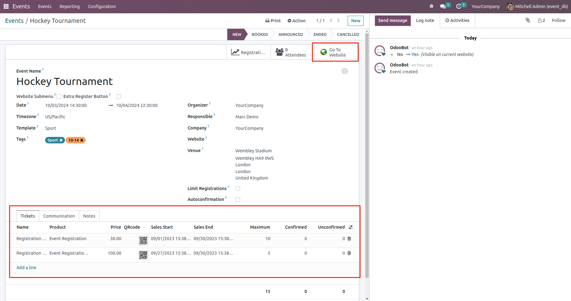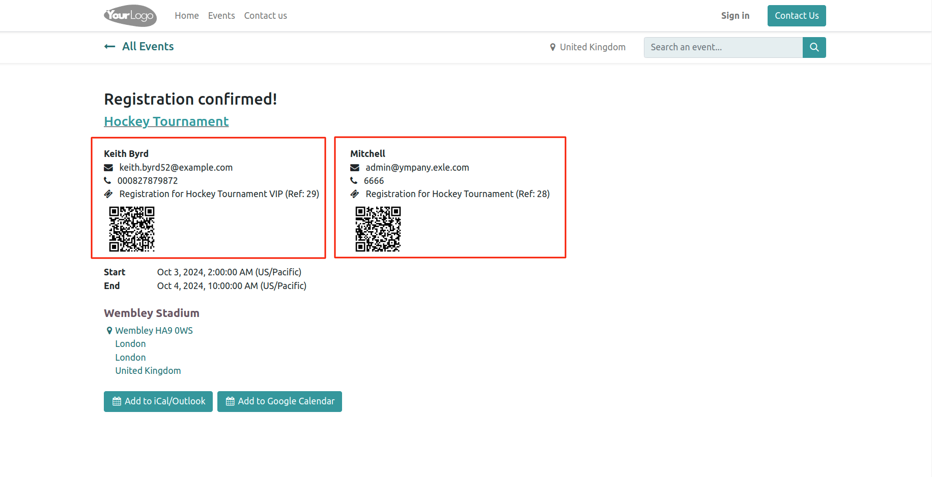 Sent Ticket contain QR code to Attendee by Mail on Confirming Registration for the Event.