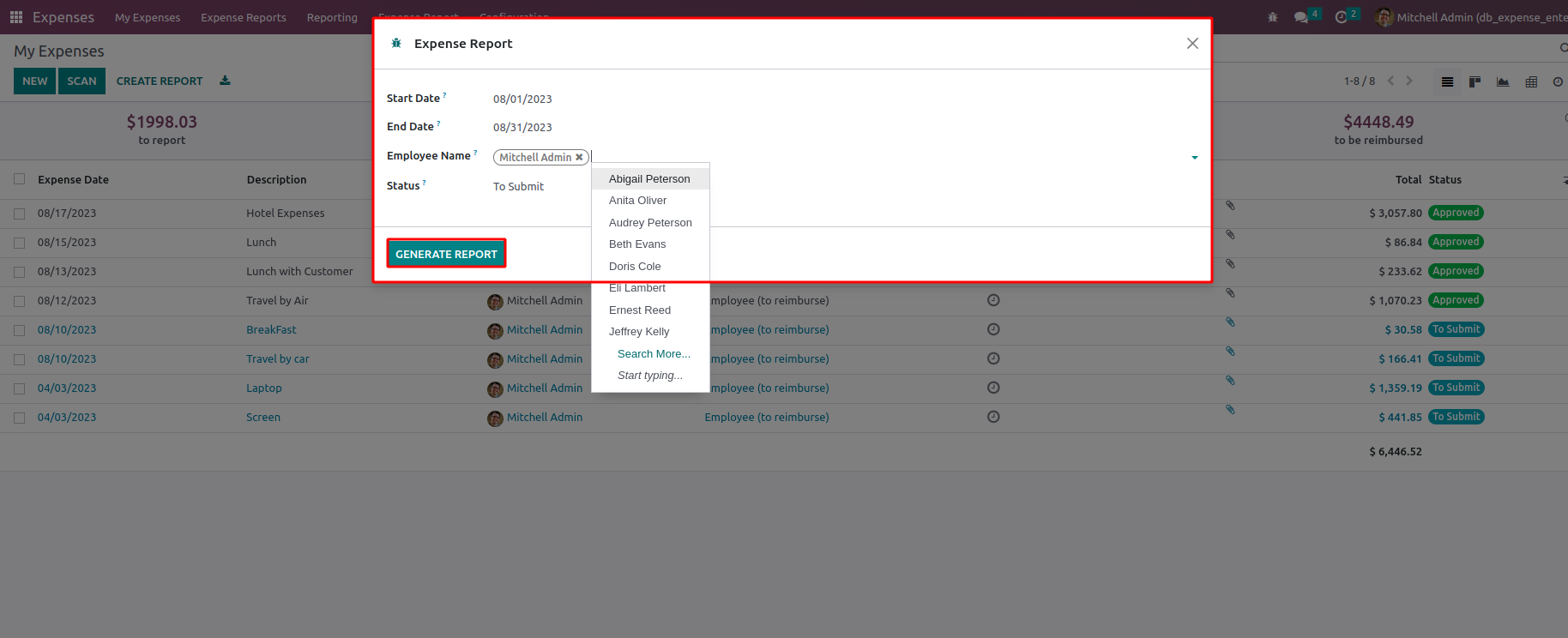 Generate Employee Expense Reports As Per The Specified Requirements.