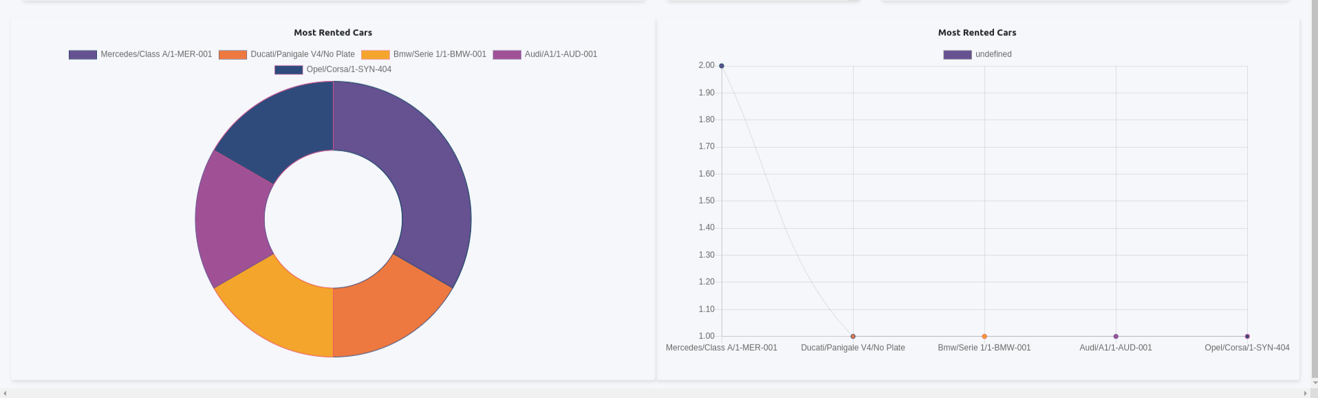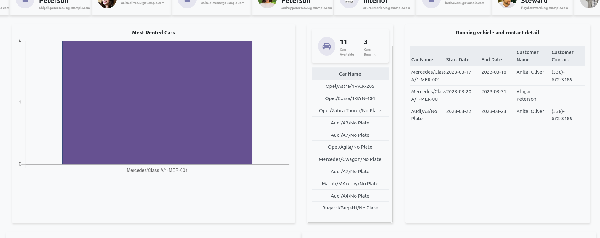 An elaborated dashboard view with Top Customers, Most Rented Cars and Available Vehicles.
