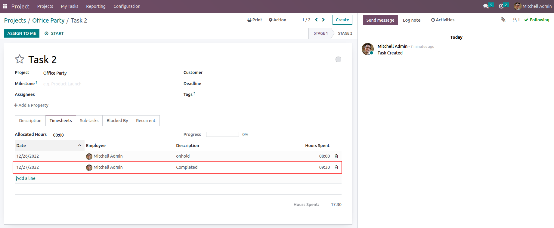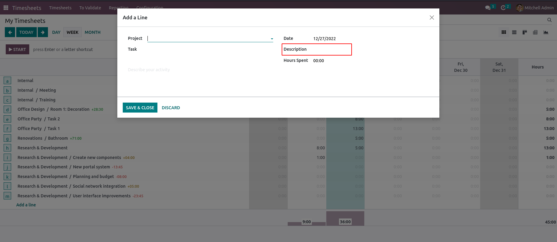 In Timesheets module we can add timesheet for the tasks like below. In here we can see a new field for adding description of the current task.
