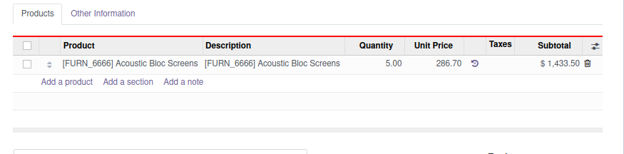 We can see a new widget with two buttons and selection option for One2Many fields. .