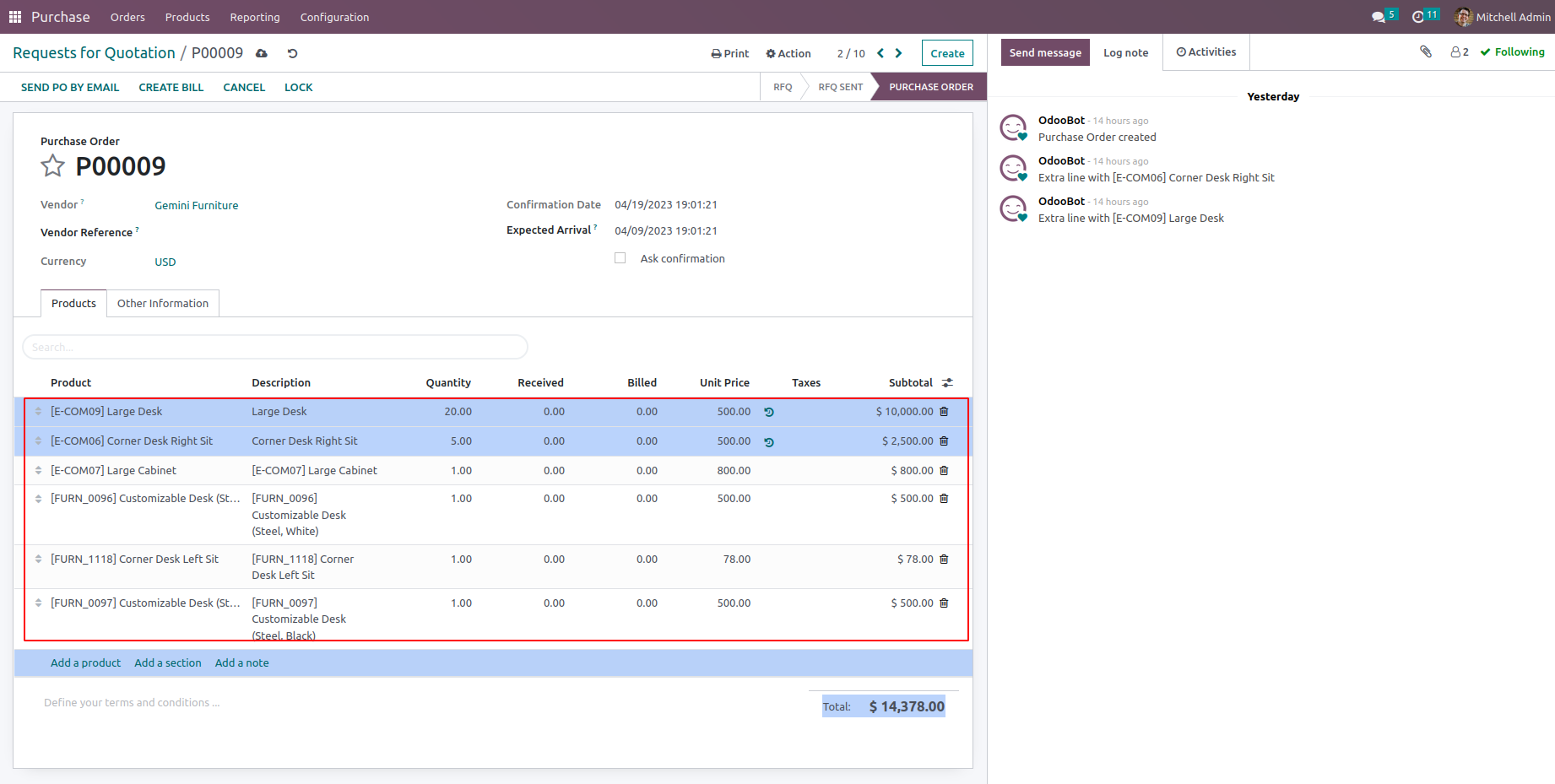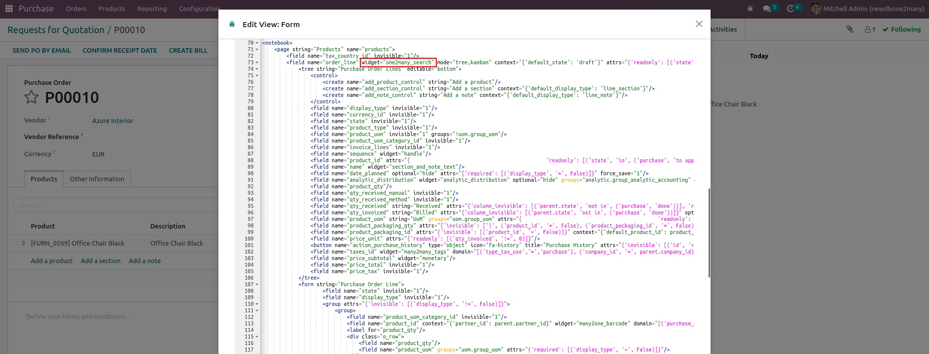 A search bar is visible above the One2many field with 'one2many_search' widget