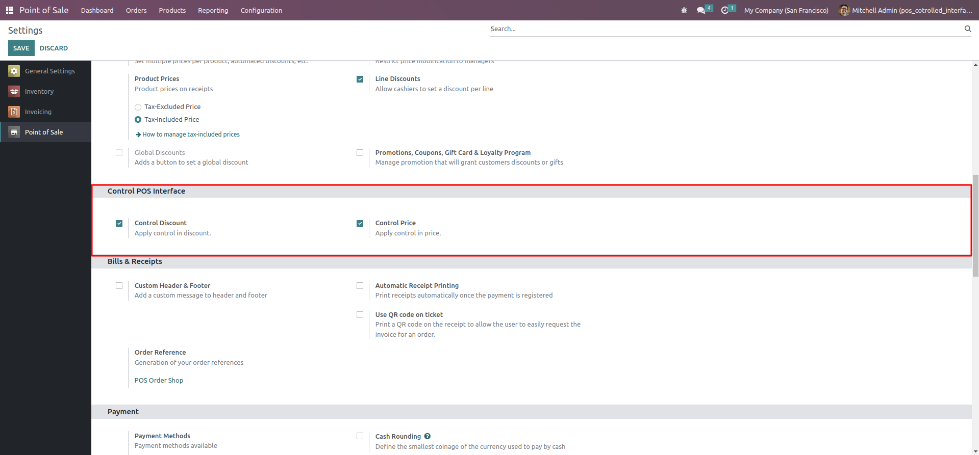 Here we can enable the Control Discount and Control Price buttons to control discount and price.