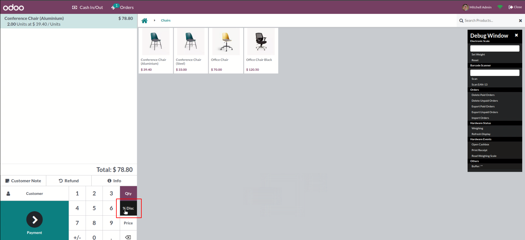 Here we can see the price and discount buttons are disabled.