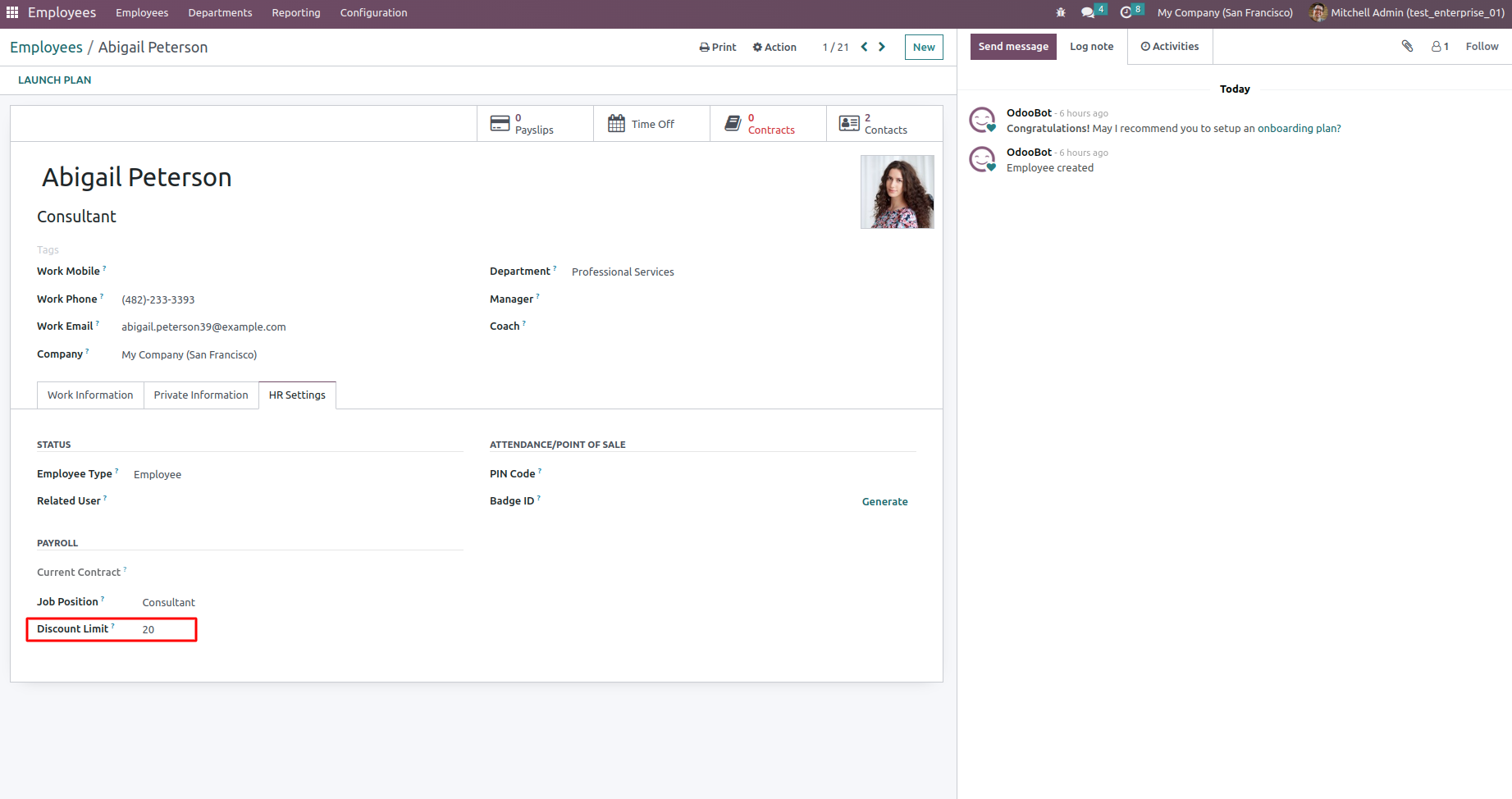 Sets discount limit for each employee.