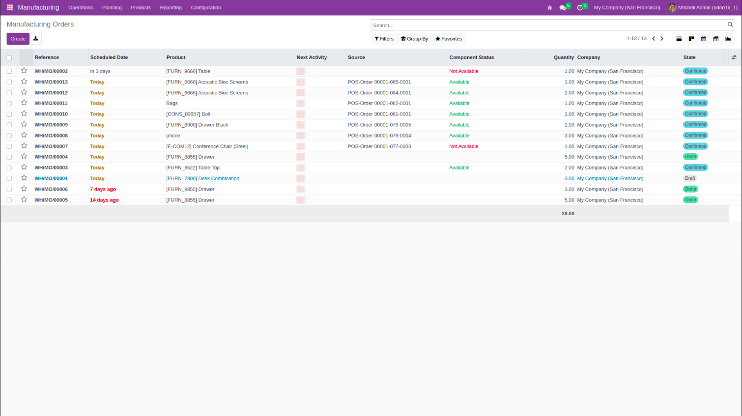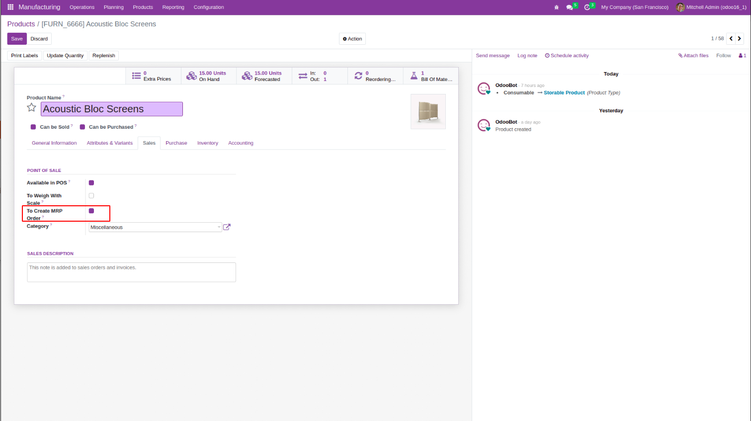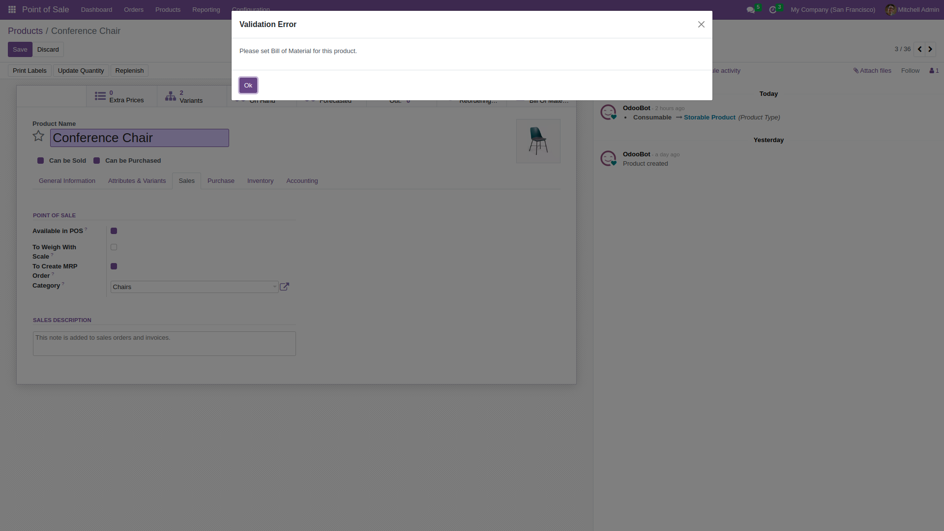 Select the products for sale. Make the payments and validate it. Check Manufacturing orders.