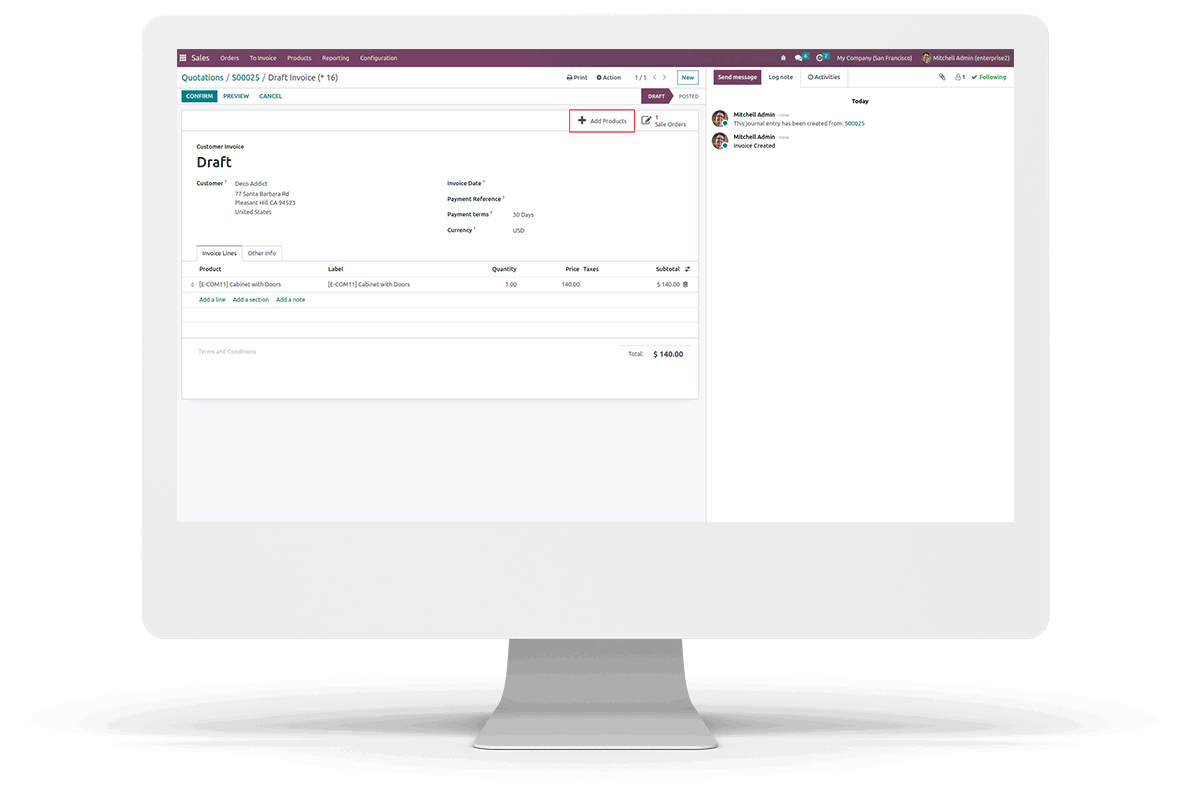 A definite Smart button in the form view of the customer invoice and vendor bill helps you to select multiple products to be directly added to the invoice or bill.